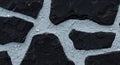 Pieces of rough grey stone forming an edge to a garden border.Photo Title: Rough Stone Shapes