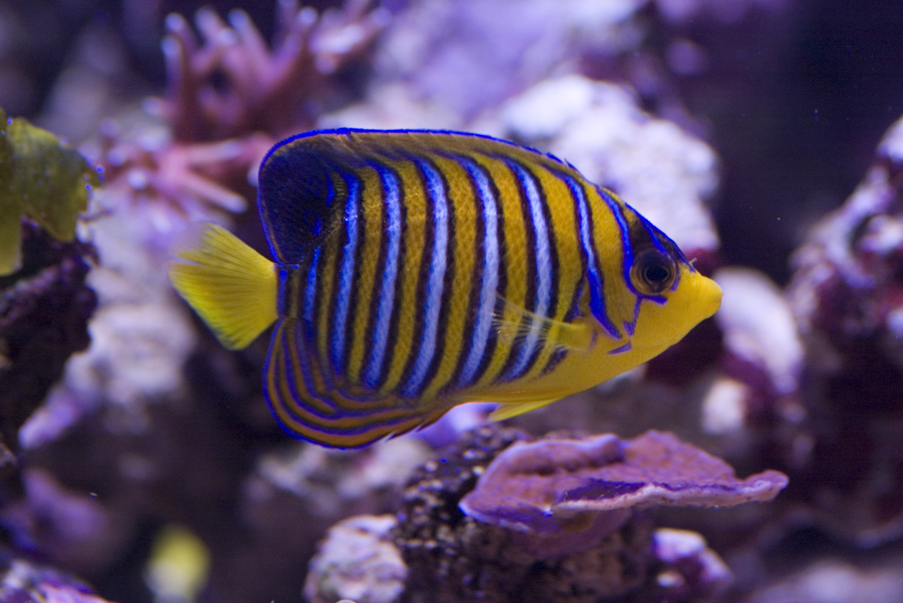Keywords: yellow, blue, royal, angelfish, striped, bright, colourful, aquatic, underwater, Pomacanthidae