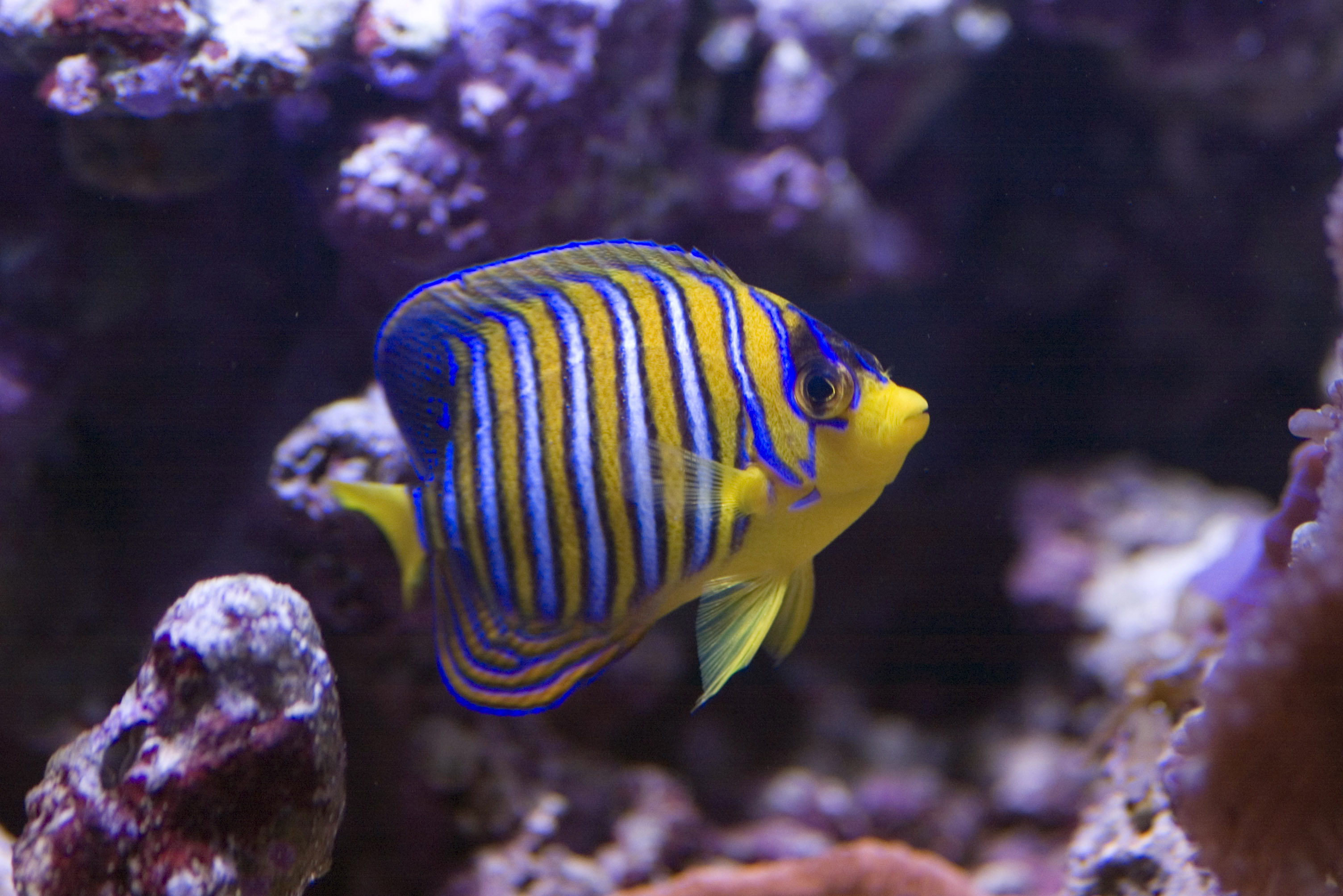 Keywords: yellow, blue, royal, angelfish, striped, bright, colourful, aquatic, underwater, Pomacanthidae