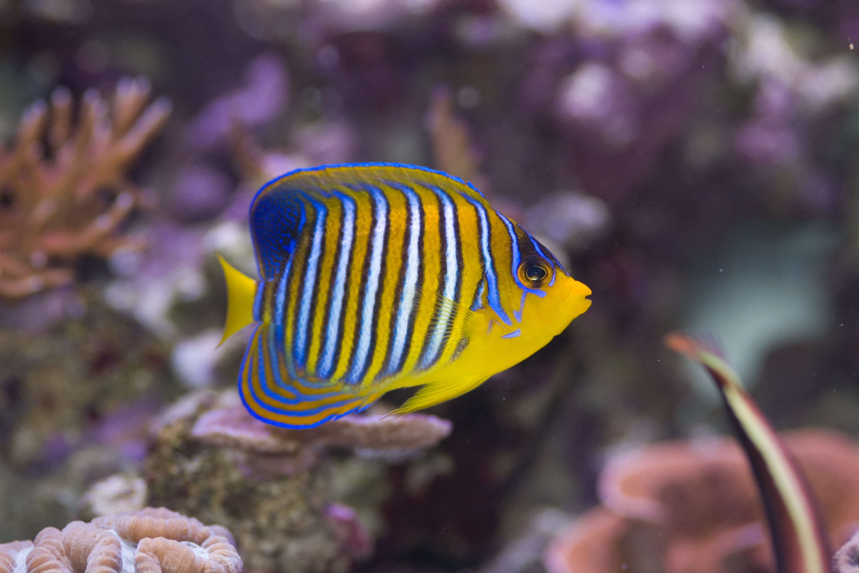Keywords: yellow, blue, royal, angelfish, striped, bright, colourful, aquatic, underwater, Pomacanthidae