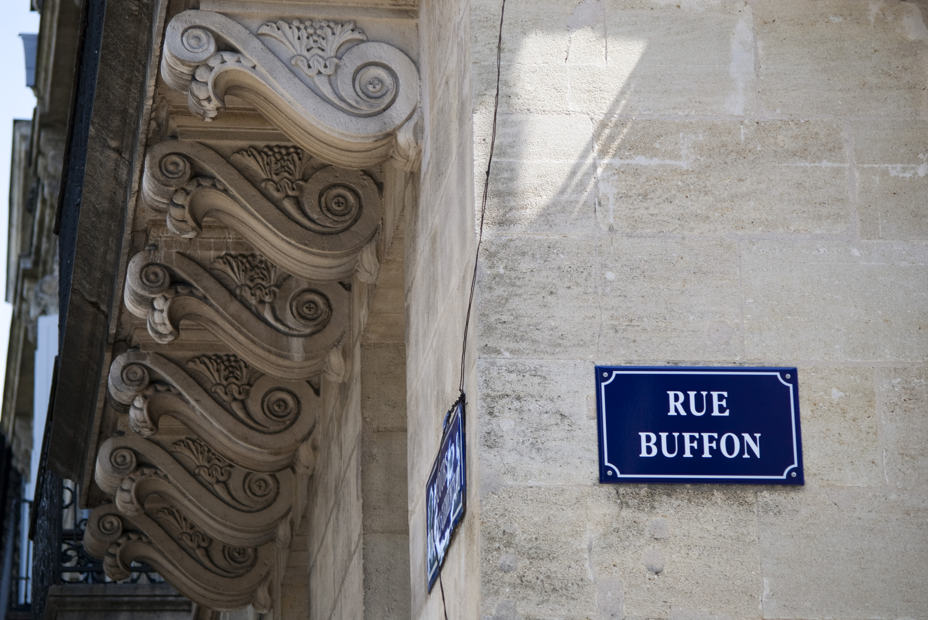 Keywords: corner, rue buffon, town, blue, plaque, enamel, street sign, name, road