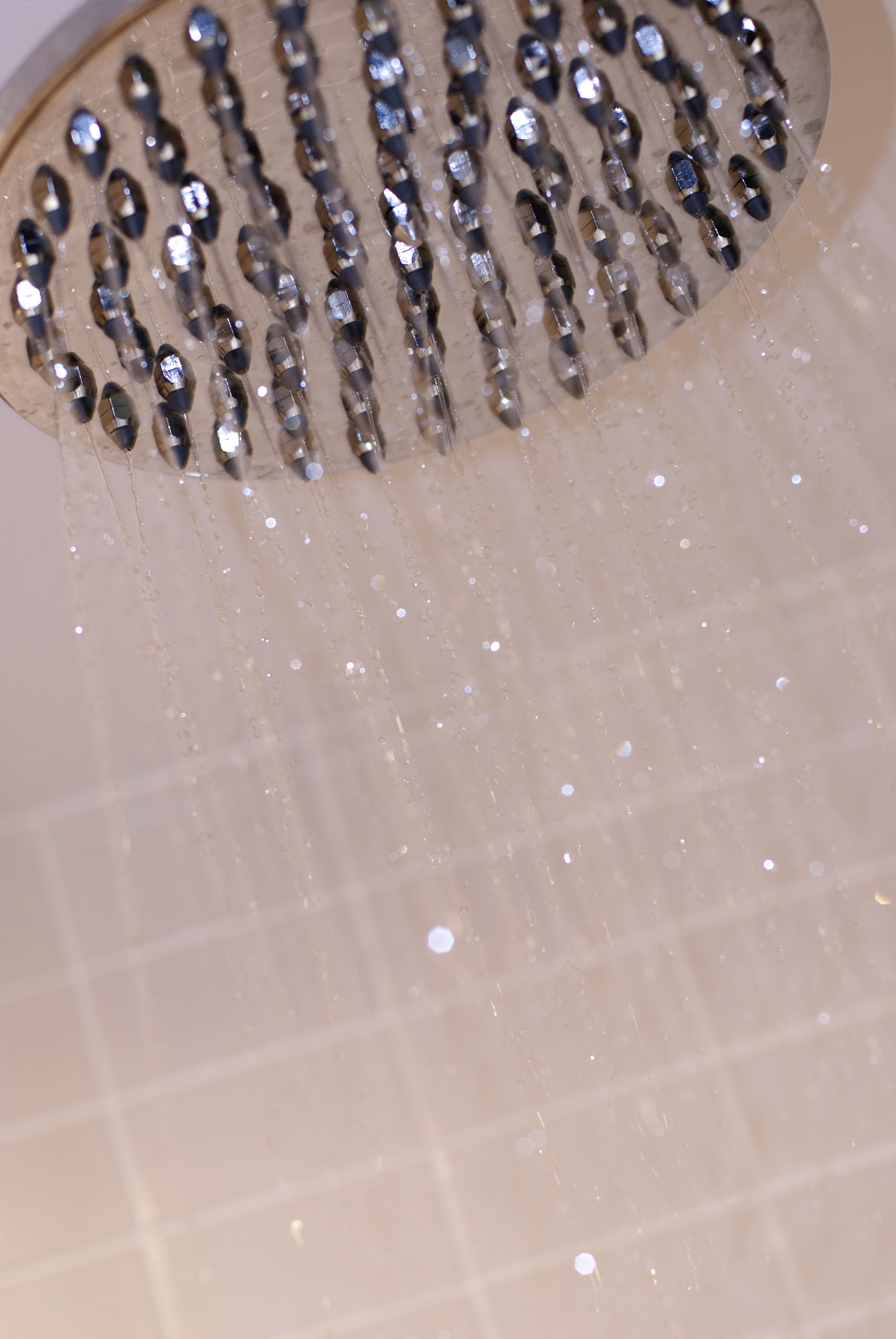 Keywords: white, copyspace, water, tiles, health, hygiene, interior, bathroom, shower, cleanliness, plumbing, fixture, droplets, showering, showerhead