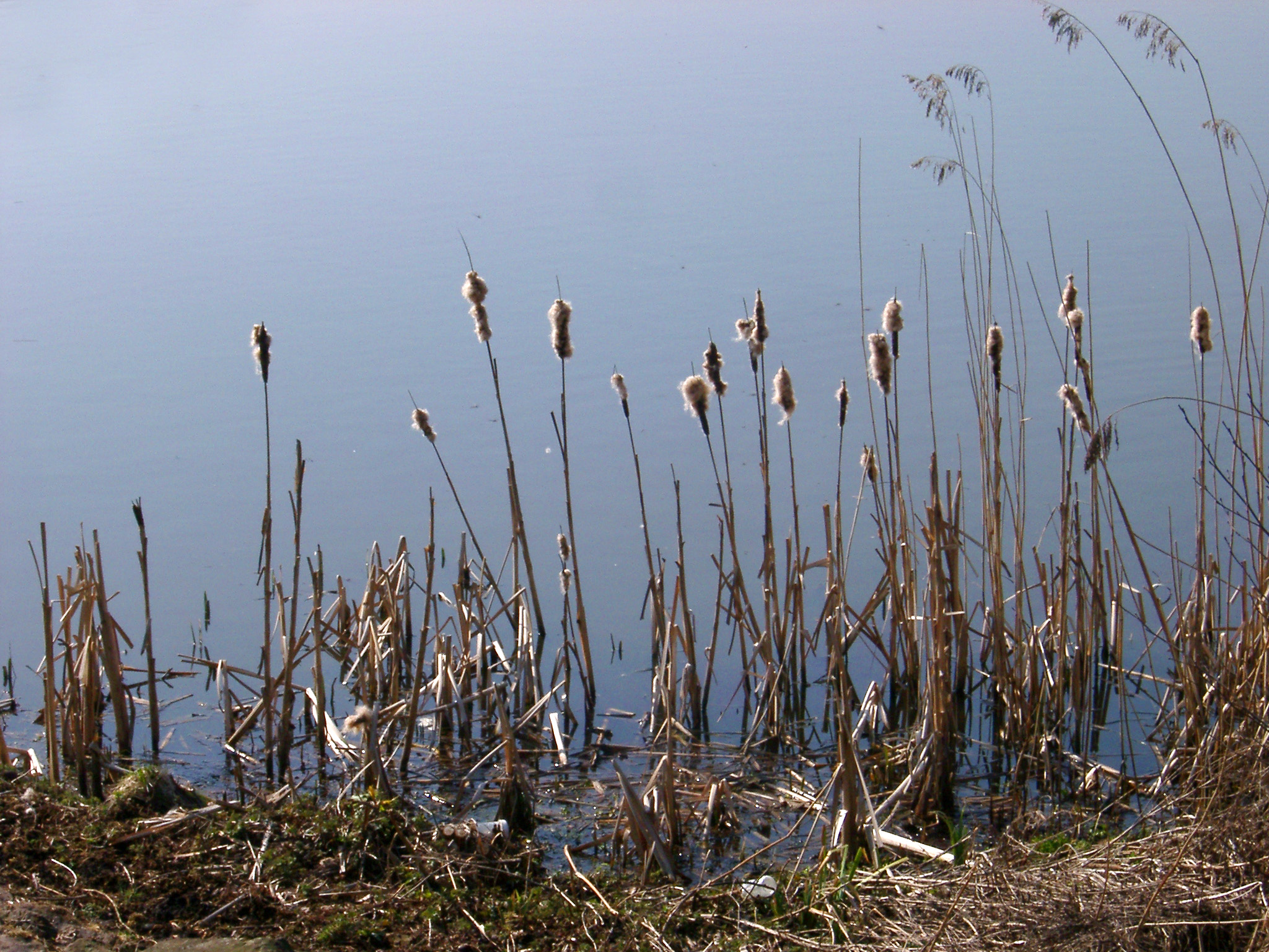 rushes growing in wet soil beside a lake