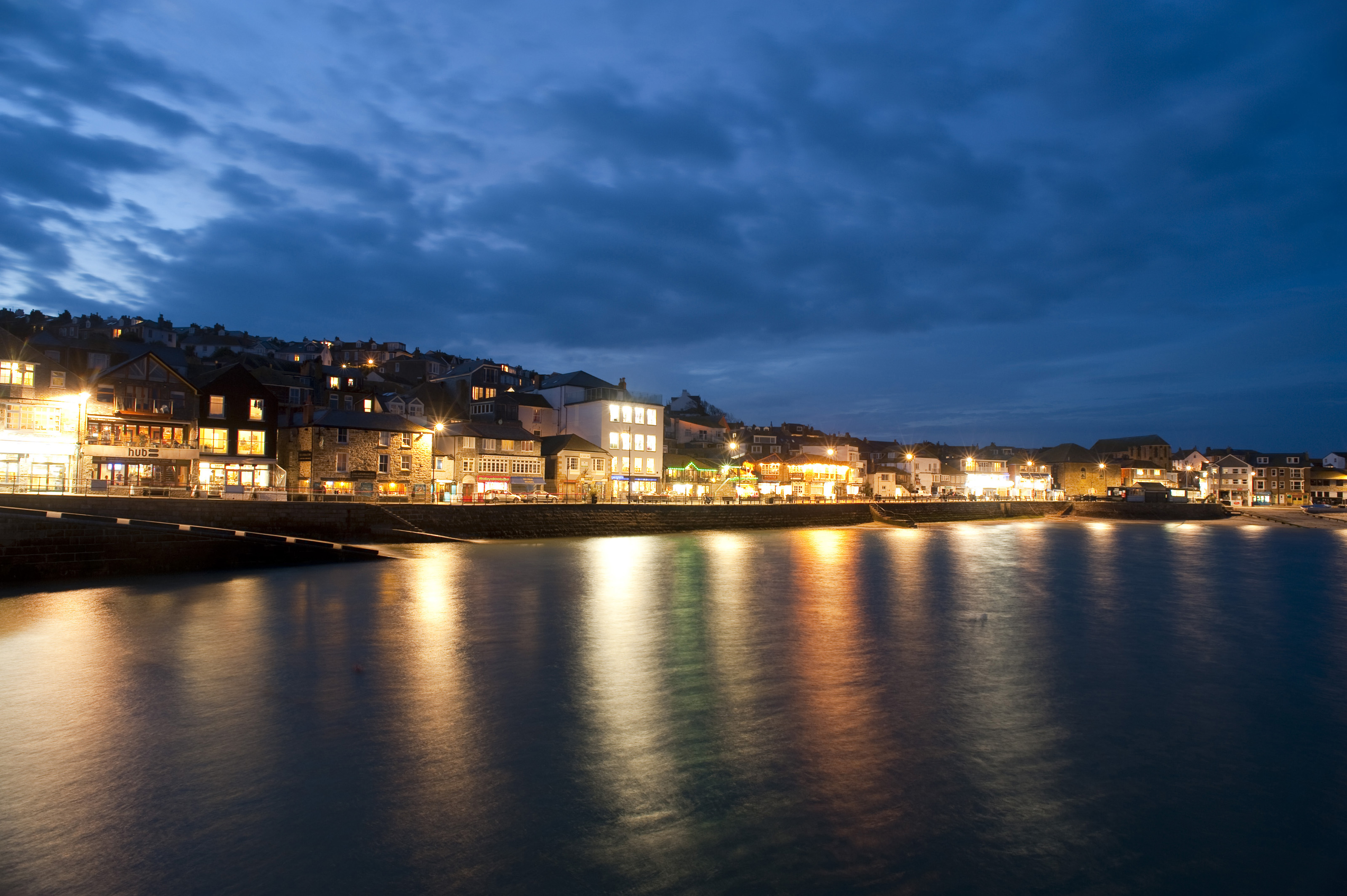 Keywords: bright, travel, calm, colourful, night, ocean, reflection, waterfront, coastal, twilight, town, picturesque, lights, illuminated, buildings, harbour, cornwall, holiday resort, st ives, saint ives