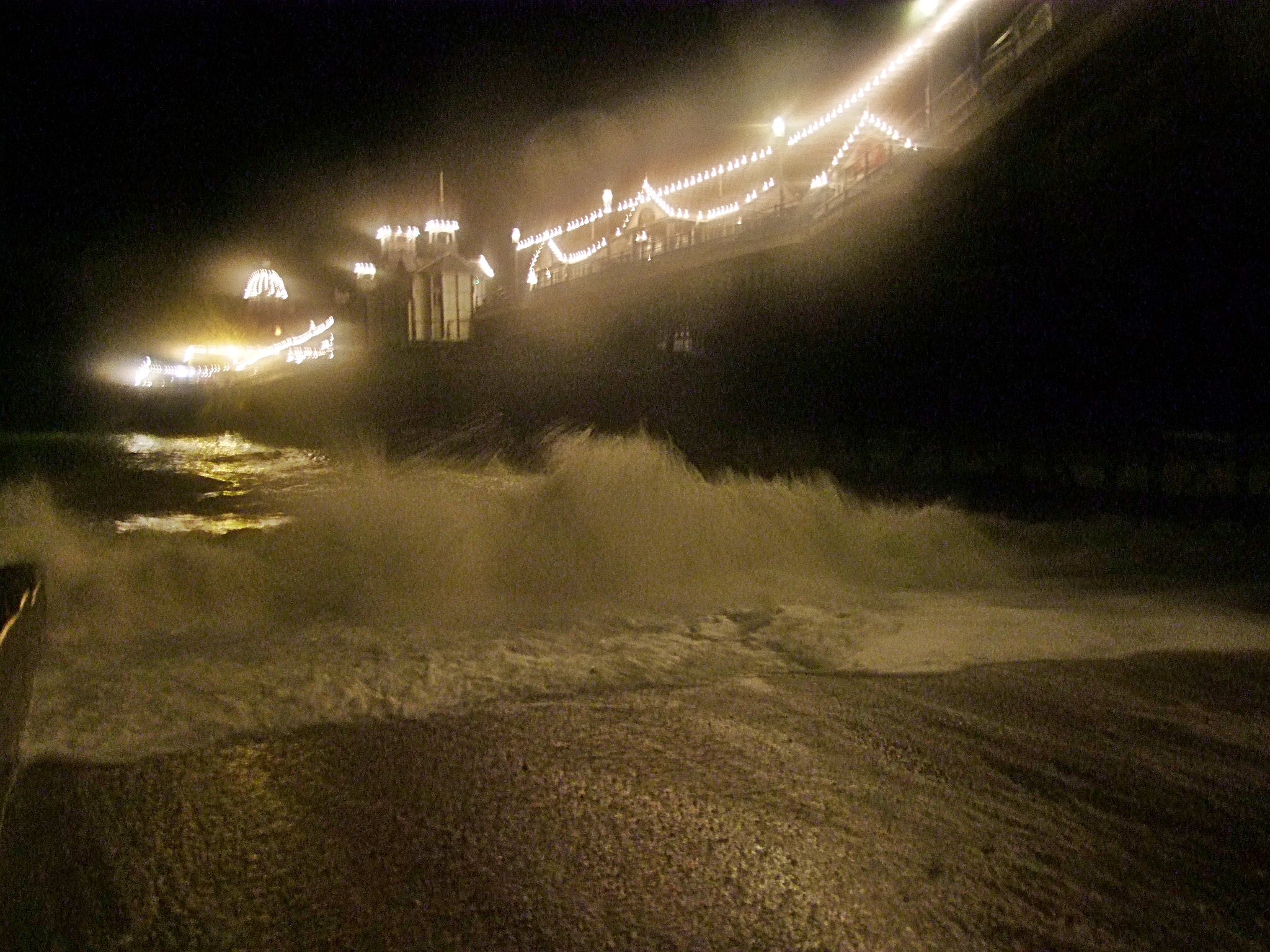 atmospheric image of a storm battering a coast line - grainy/blurry
