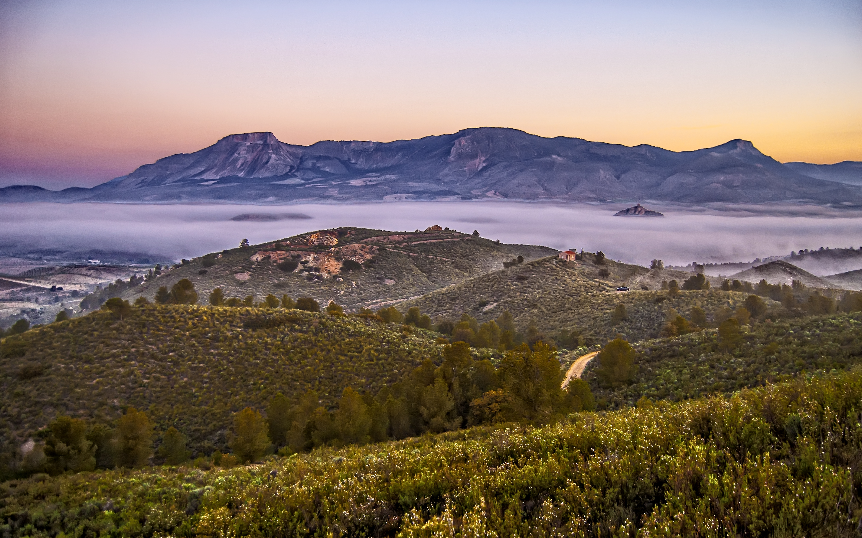 Keywords: nature,landscape,sky,mount,plants,horizon,fog,siege