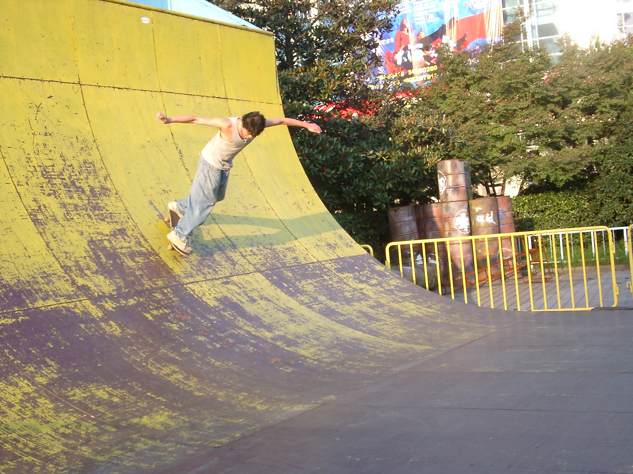 Keywords: china, skateboard, rider, half pipe, yellow, skateboard, trick