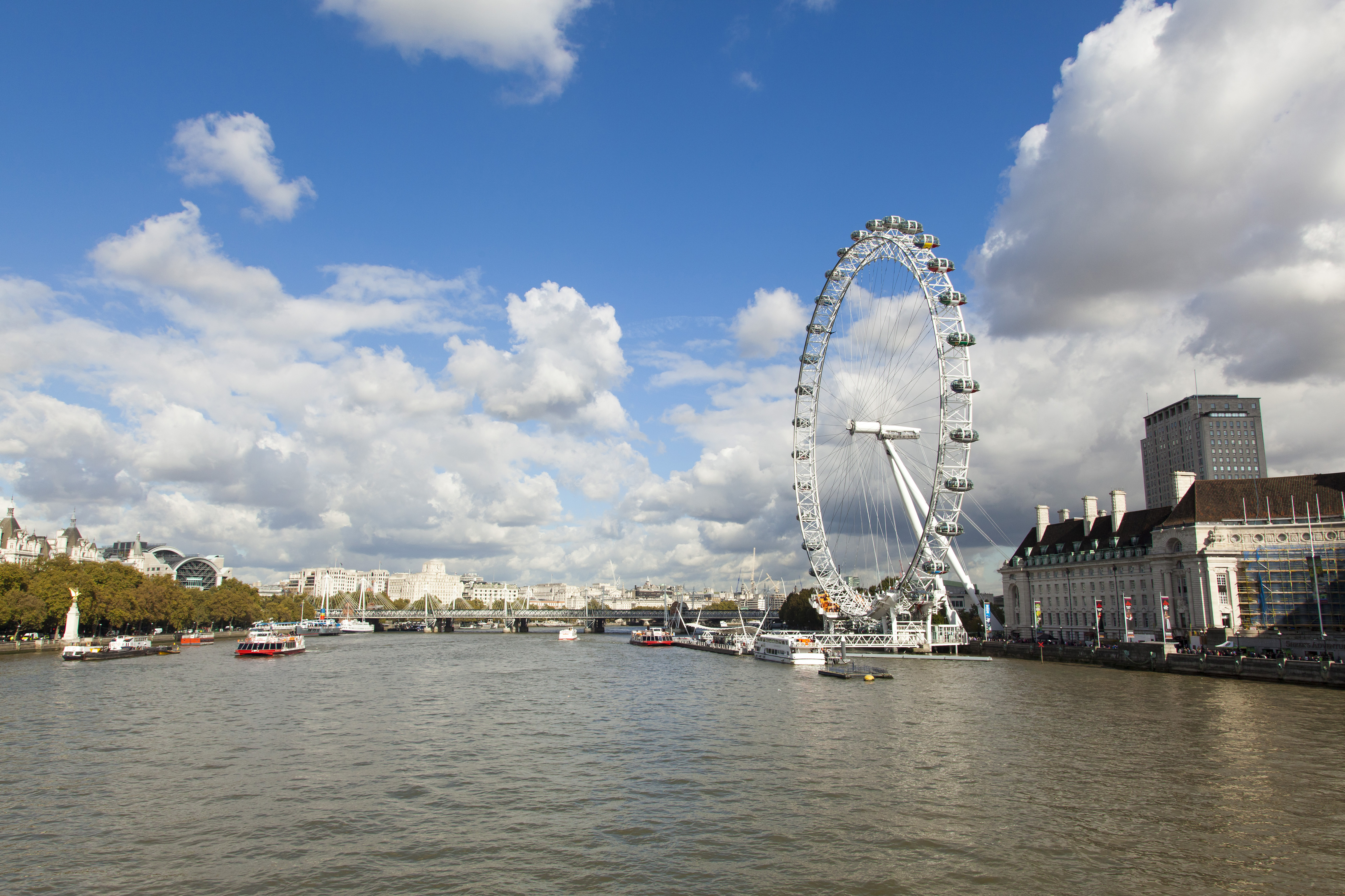 Keywords: Thames River, River Thames, London Eye, south bank, England, London, city, summer, blue sky