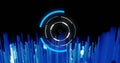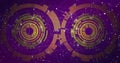 concentric circles and lines emanating from a central point, colourful background of pink and purple colours