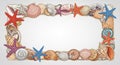 Keywords: border, copy space, frame, background, marine, maritime, nautical, sea-stars, star fish, holiday, orange, rectangle, seaside, theme, vacation