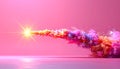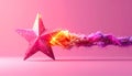 Colorful Star Shaped Stickers Scattered in Starburst Trail on Yellow Background with Copy Space