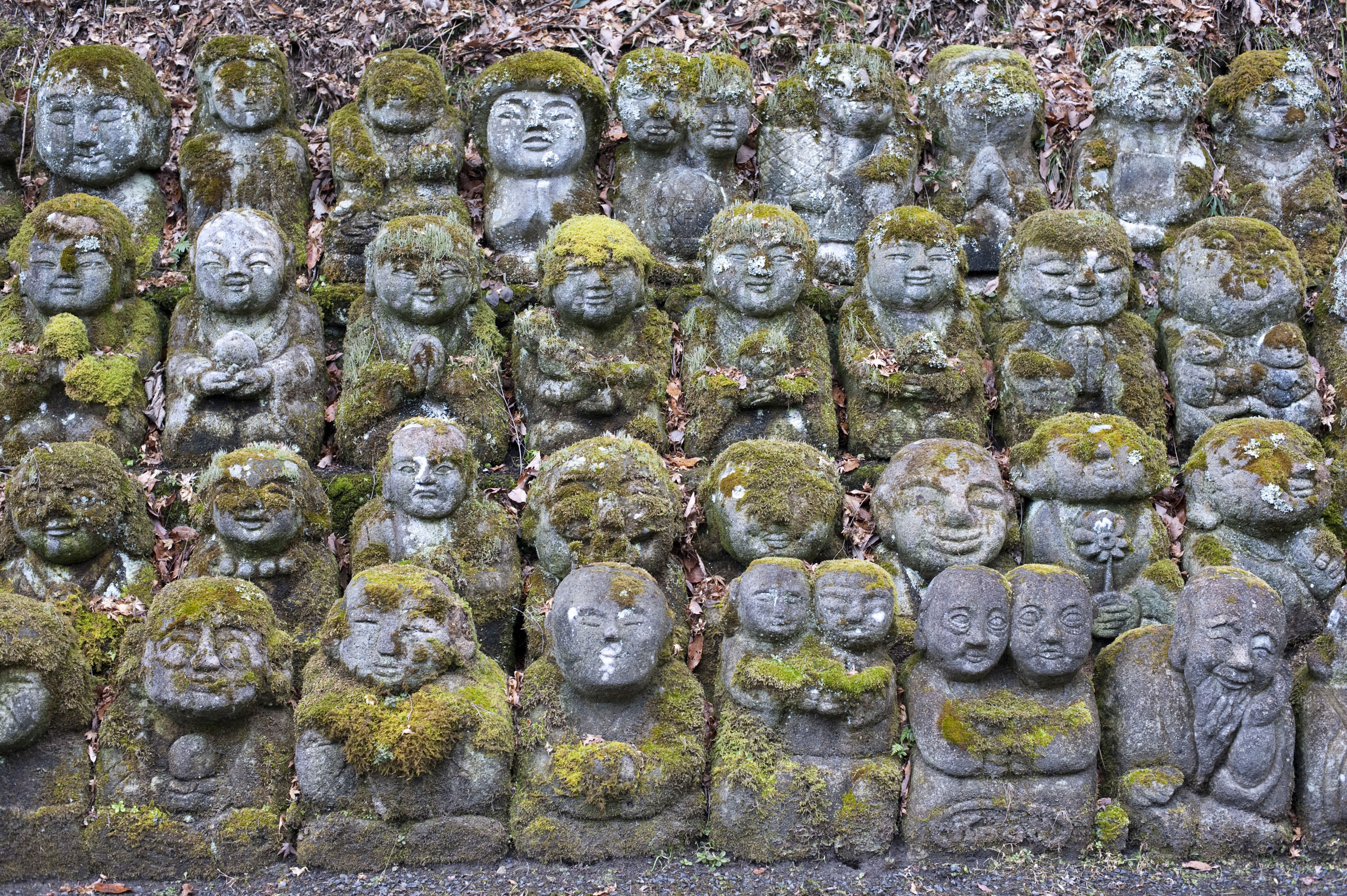 Keywords: otagi nenbutsu-ji, kawaii, cute, japan, stone, humorous, buddhist, carvings, sculptures, statues, disciples, adorable, faces, rows, multiple