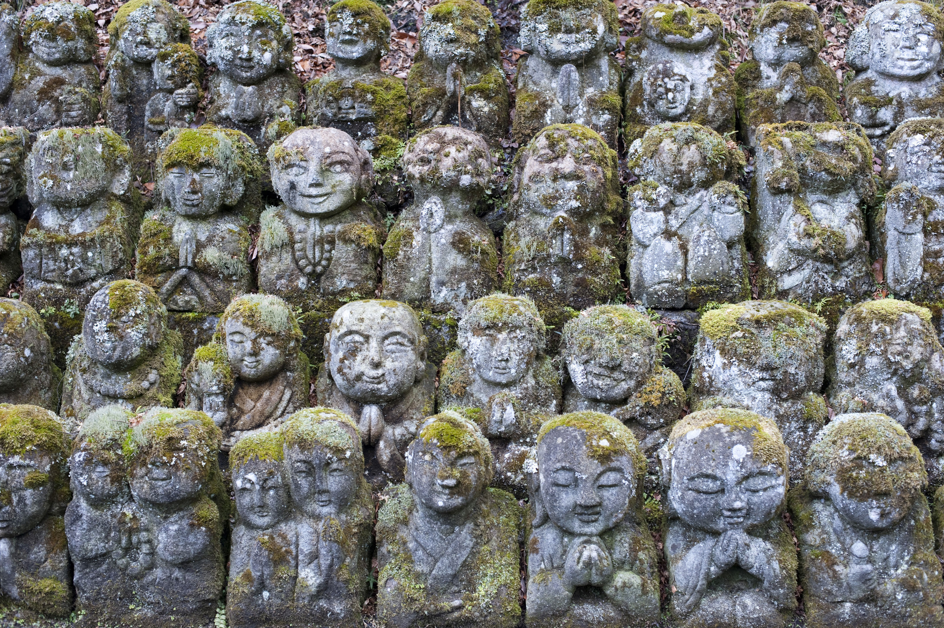 Keywords: otagi nenbutsu-ji, kawaii, cute, japan, stone, statue, sculpture, buddhist, figures, disciples, handcarved, funny, humour, religious, rakan, adorable, faces, rows, temple, mossy