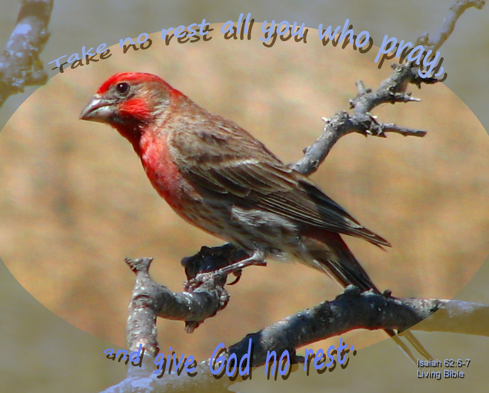 House Finch perched on a branchPhoto Title: Take No Rest-Pray