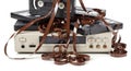 Keywords: cassette, damaged, tangled, tape, unwound, vhs, entertainment, recording, retro, copy space