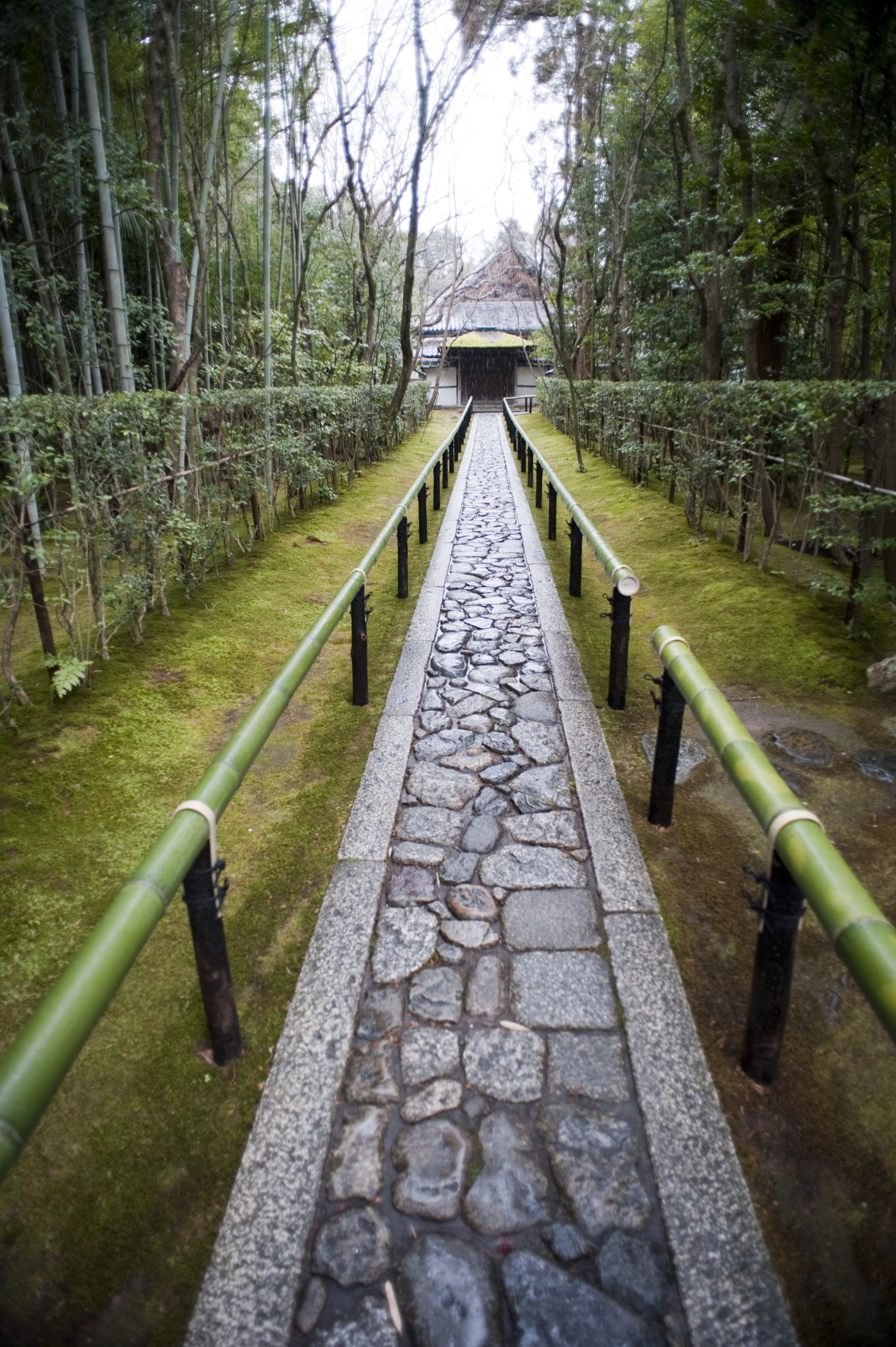 Keywords: path, formal, entrance, paved, design, garden, walkway, temple, footpath, tranquillity, landscaping, approach, straight, receding, diminishing, doorway, empty, background, japan, koto-in