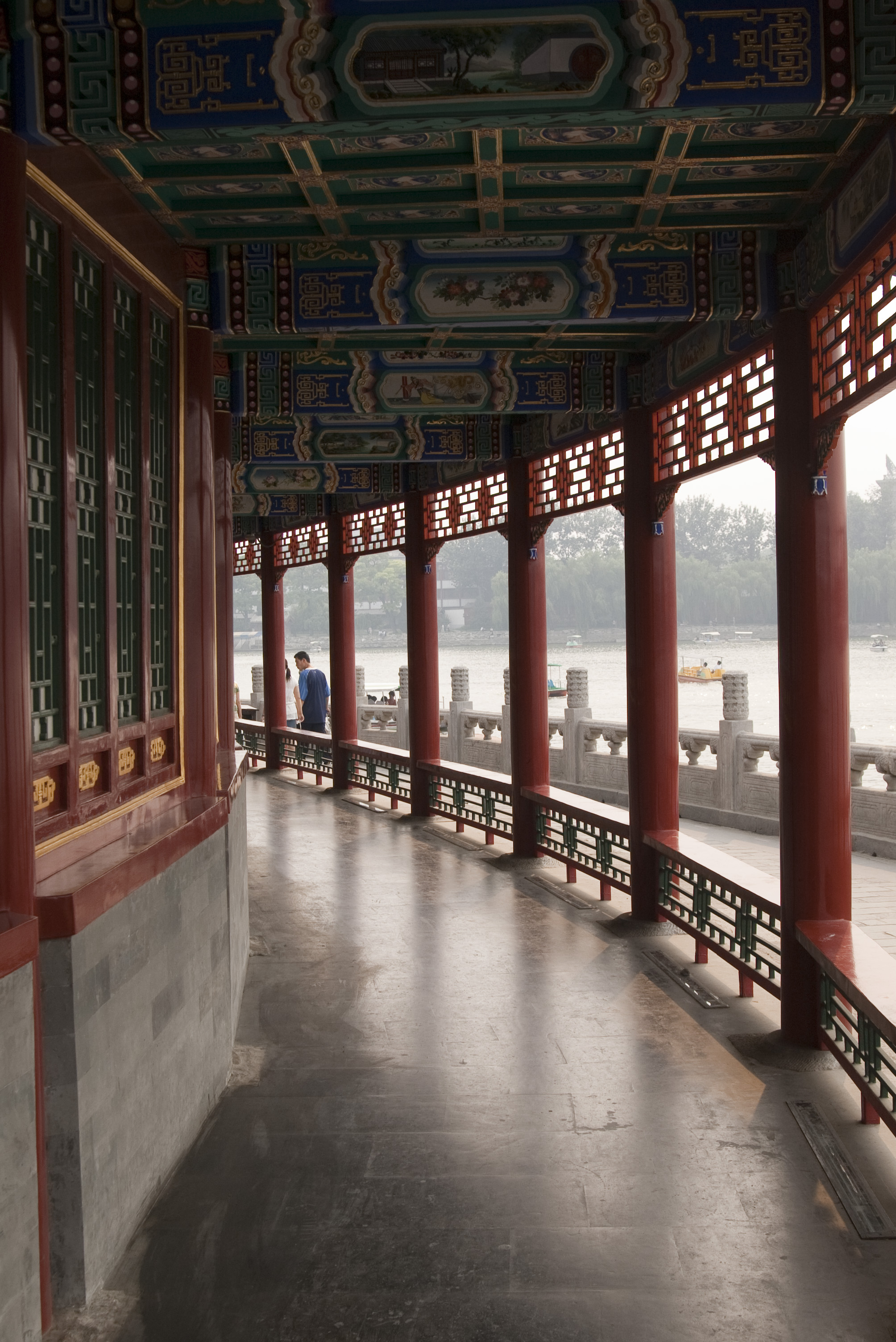 Keywords: temple, pagoda, walkway, undercover, red, china, chinese, beijing