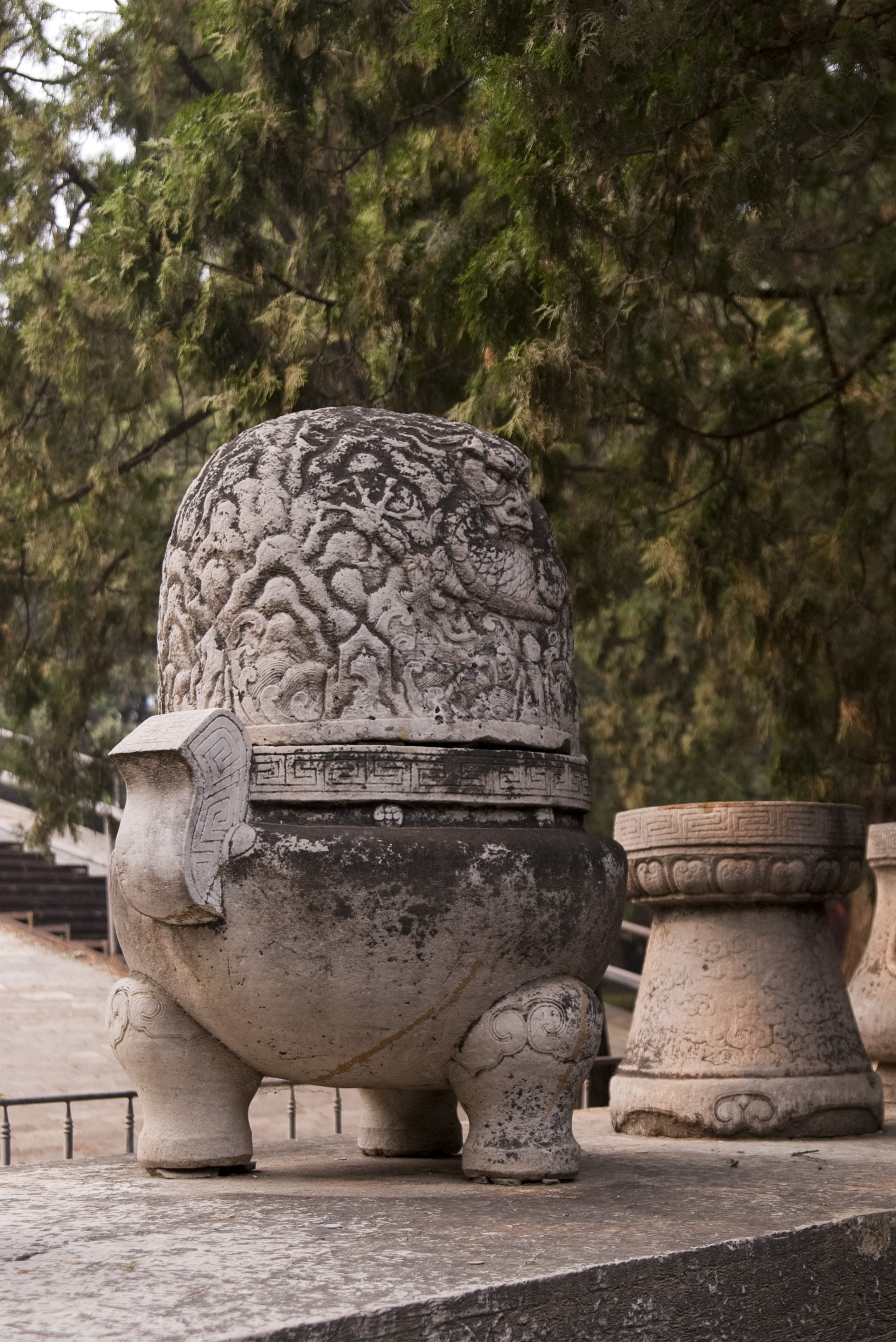 a carved stone earn outside a beijing temple