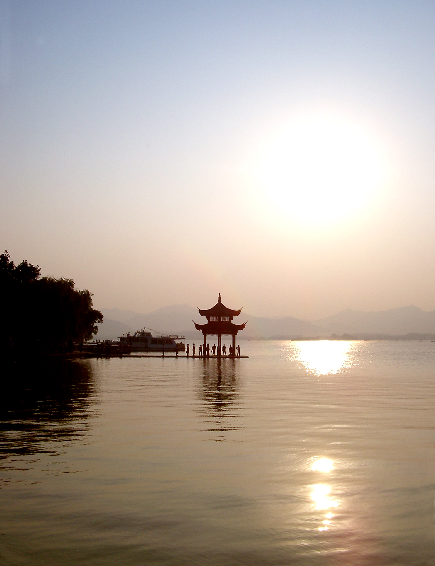 Keywords: temple, chine, lake, reflection, sunset, colourful