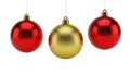 Photo Title: Three hanging red Christmas baubles