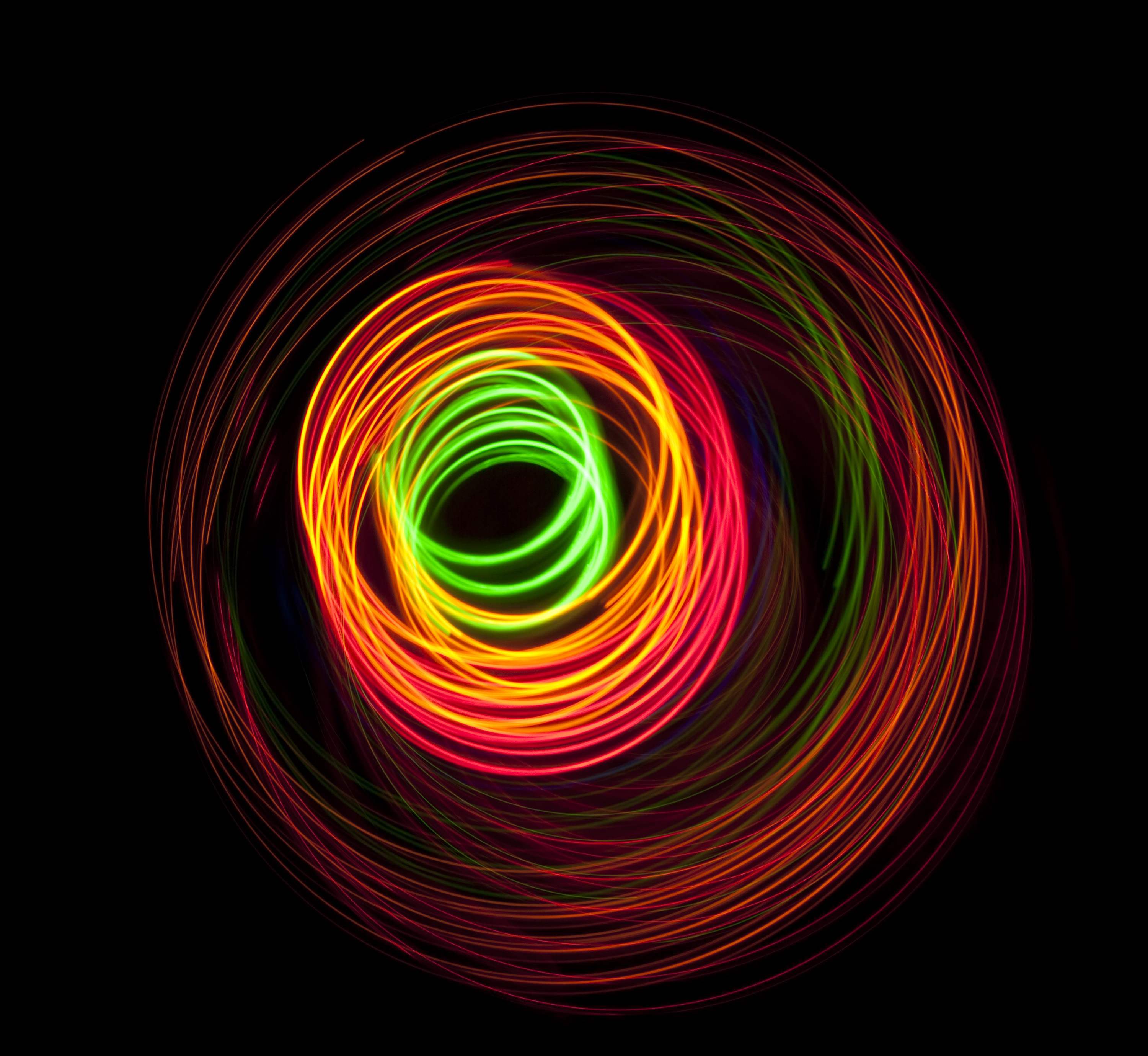 Keywords: light, pattern, circles, trails, trace, circle, colour, color, coloruful, multi-colored, multicoloured, bright, saturated, glowing, abstract, unusual, eye catching