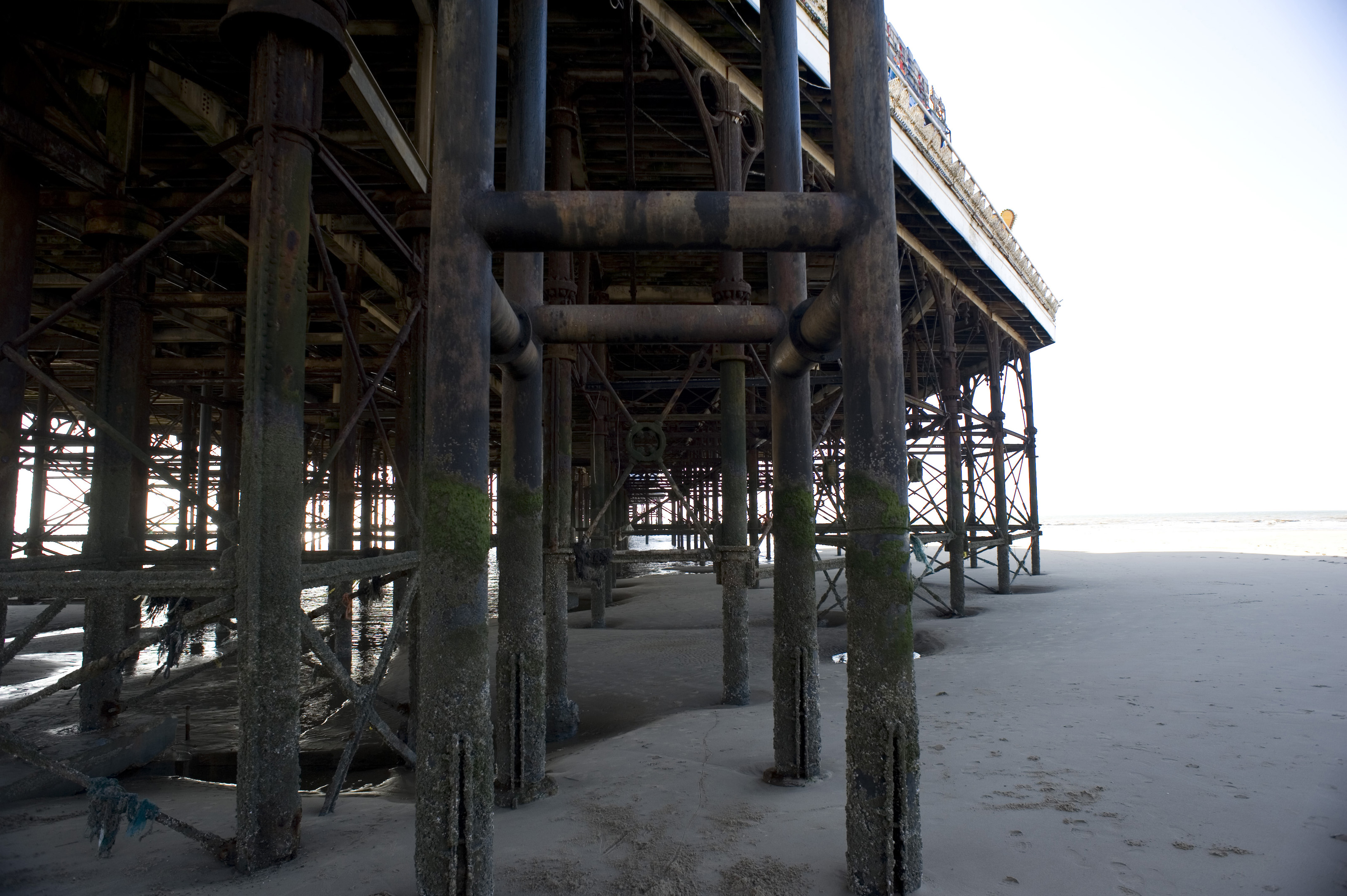 Keywords: blackpool, lancashire, england, low angle, construction, pier, beach, sand, structure, bridge, pillars, piles, support, built, sea, seaside, foundation, walkway, raised, europe