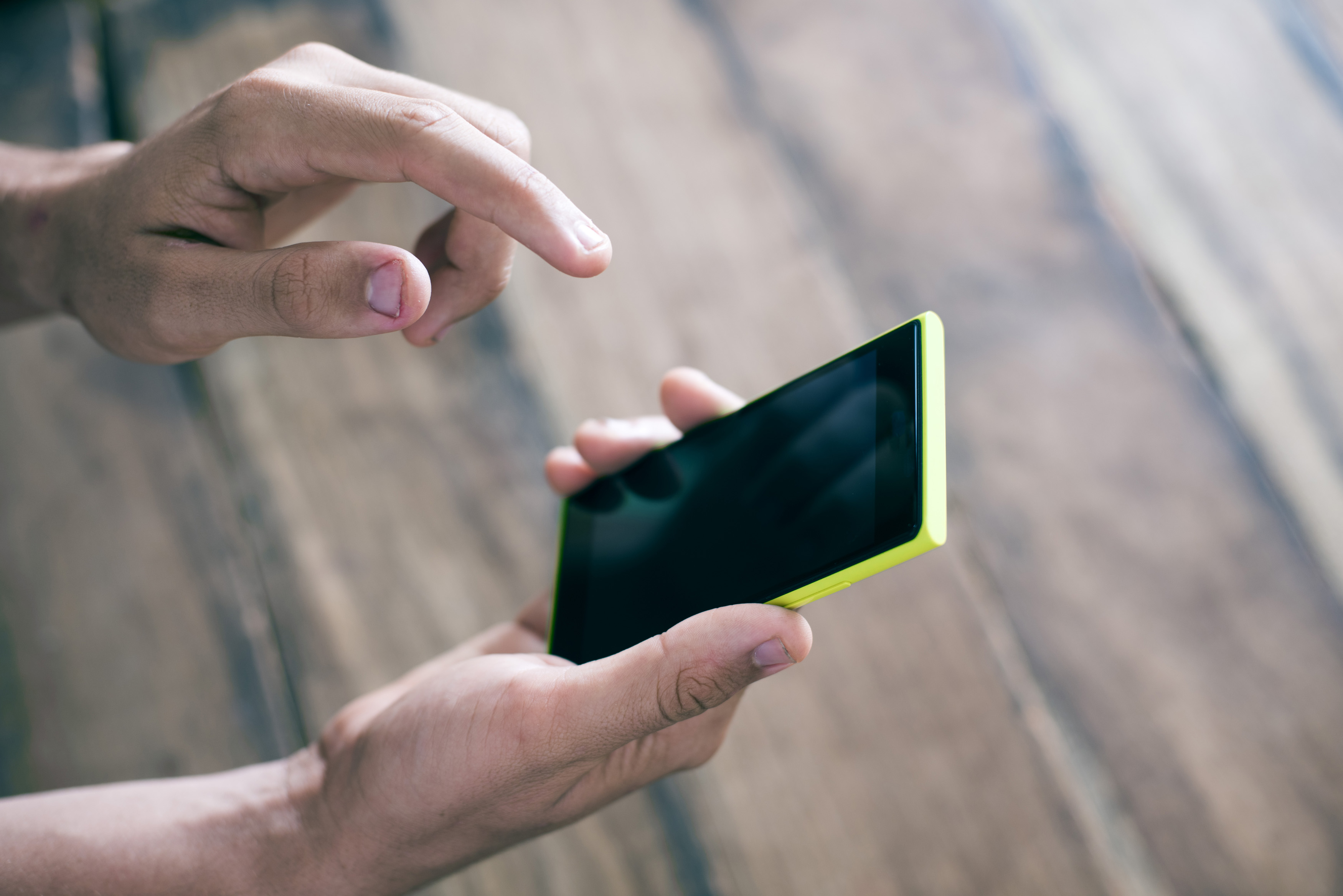 Keywords: cellphone, hand, man, mobile, phone, smartphone, communication, blank, screen, wood, holding, multimedia, finger, navigating, reading