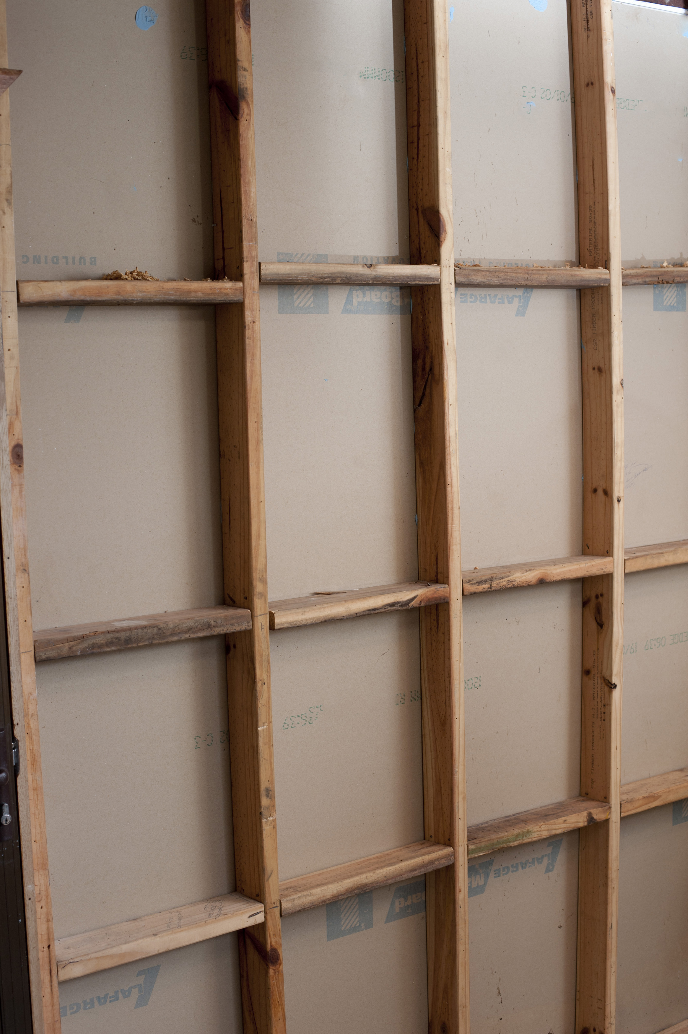 Keywords: building, construction, frame, stud, wall, wooden, wood, installation, insulation, plasterboard