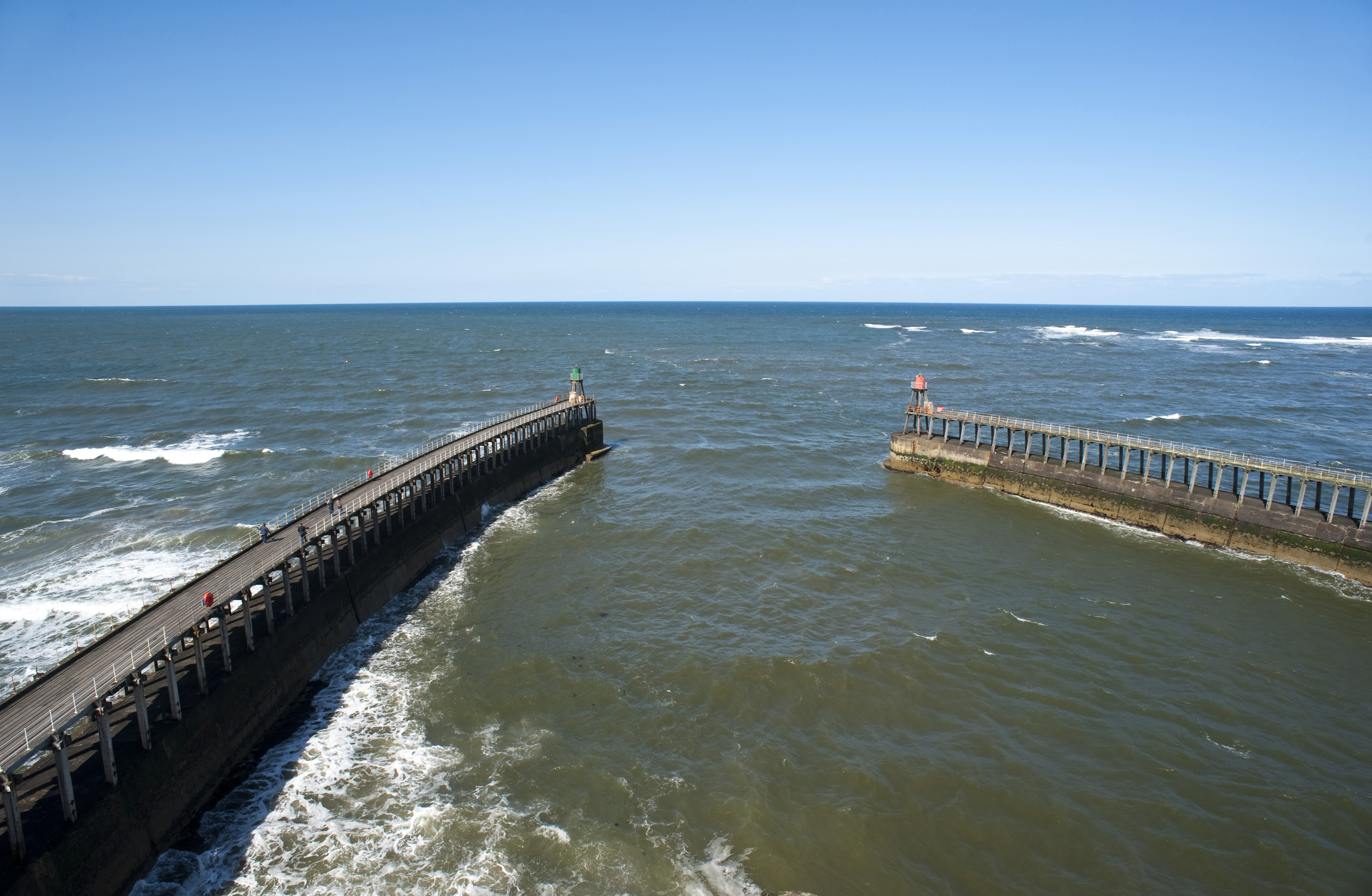 Keywords: whitby, north yorkshire, england, ocean, stone, pier, coastal, view, navigation, nautical, marine, above, shipping, curved, harbour, breakwater, seawall, defences, beacons, entrance