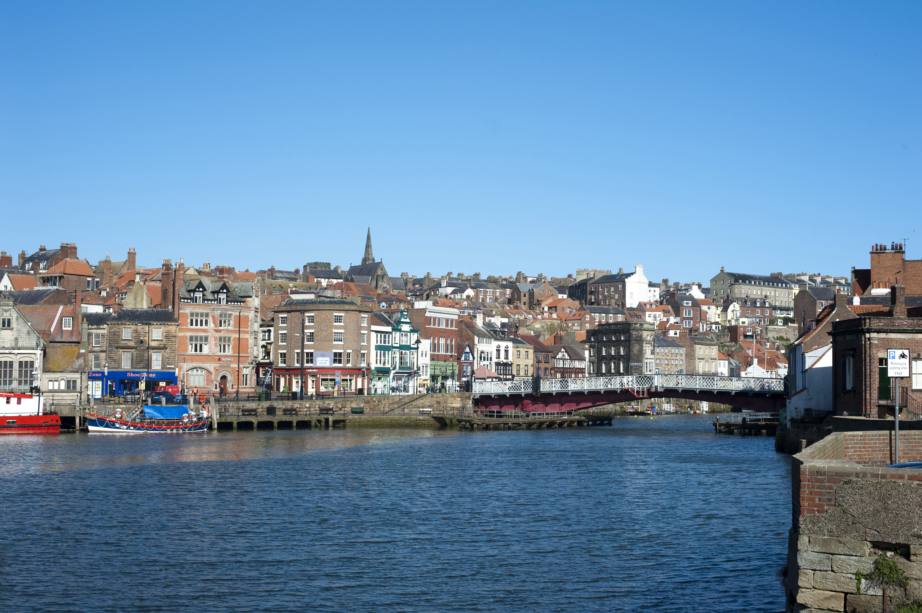 Keywords: england, whitby, yorkshire, blue, travel, summer, scenery, ocean, sea, harbor, waterfront, scenic, swing, houses, town, landmark, bridge, english, homes, north yorkshire