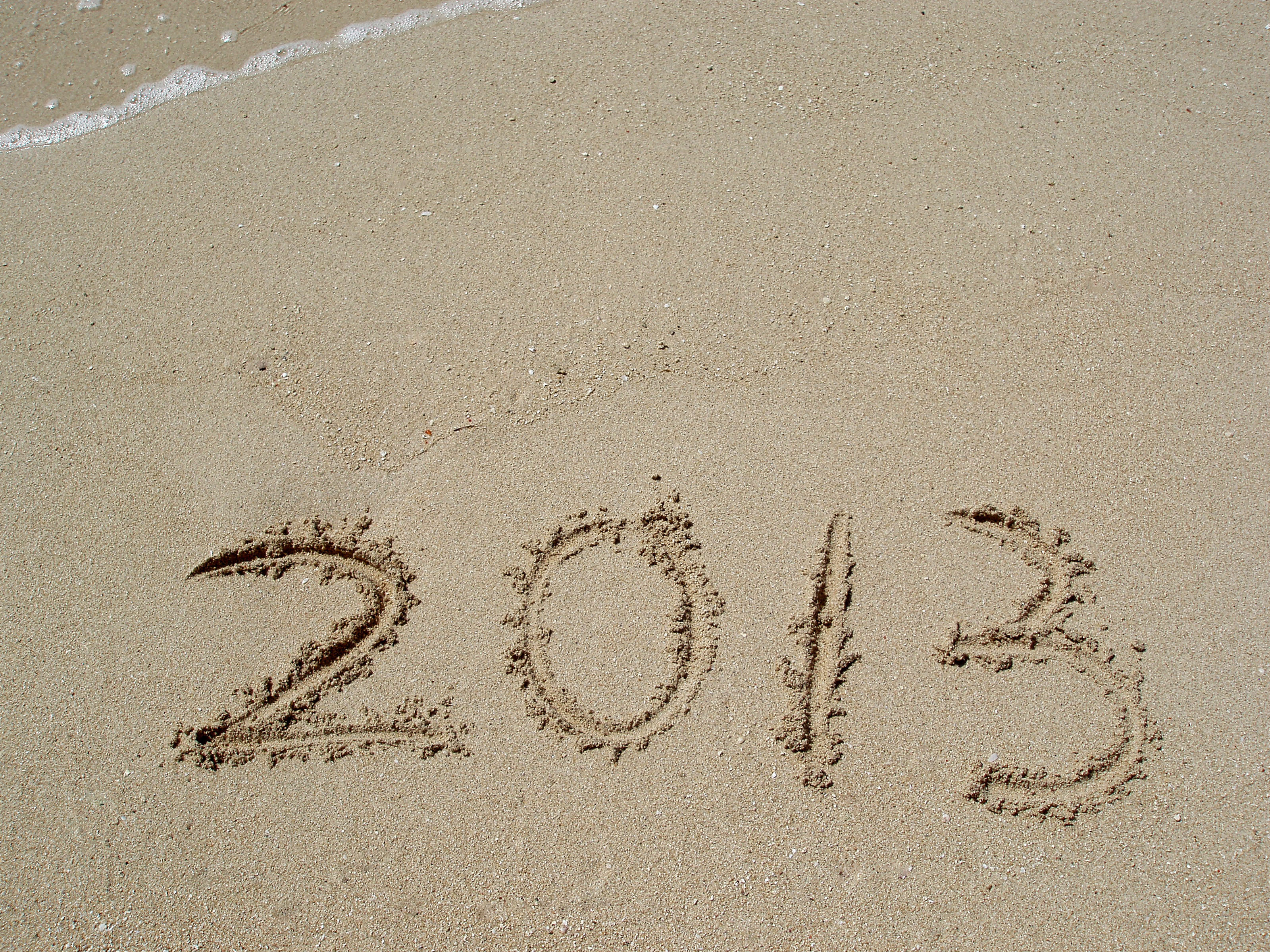 the year 2013 written on a sandy beach