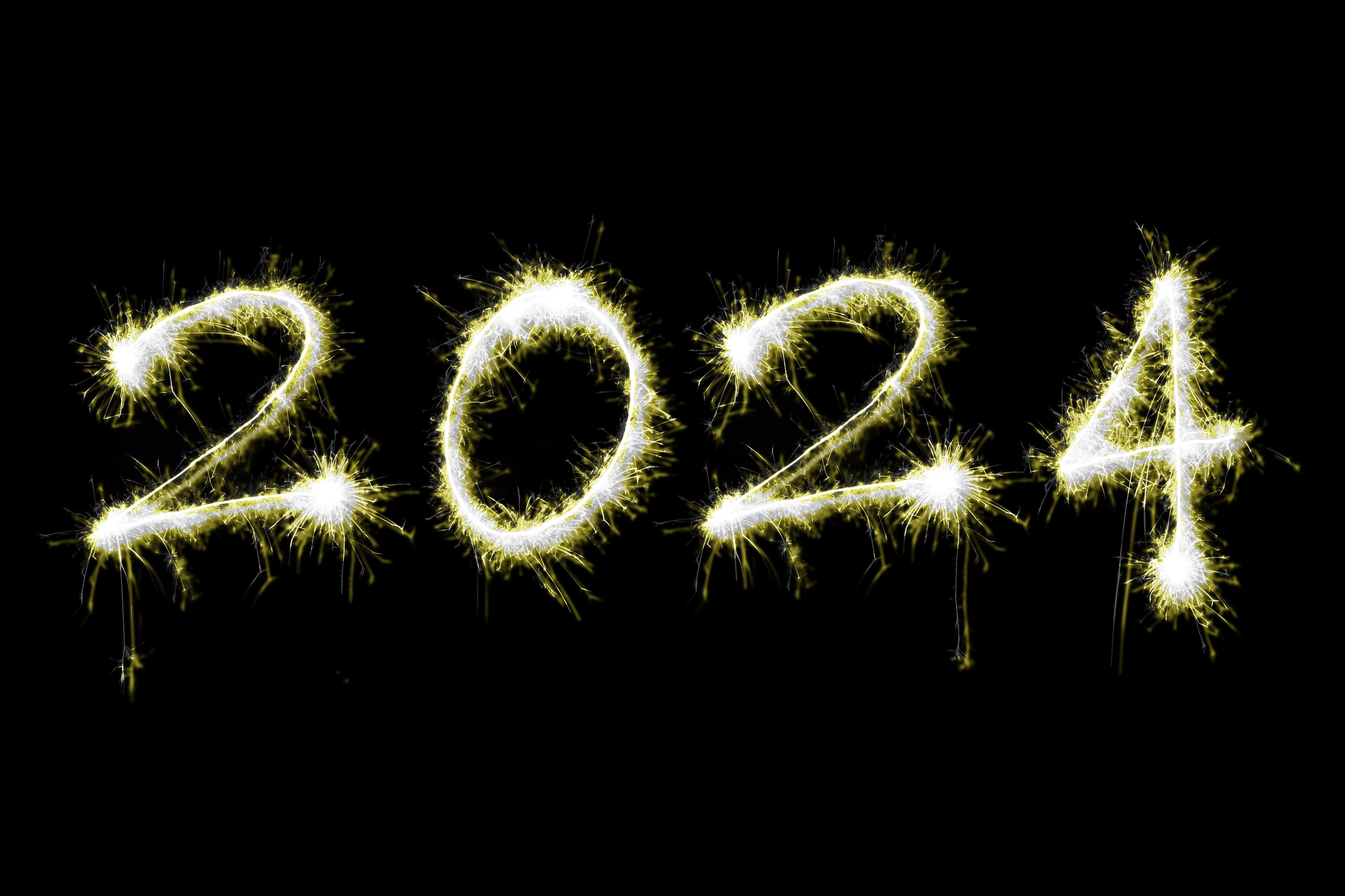 Keywords: black background, celebration, copy space, firework, future, new year, sparkler, year, annual, eve, night, holiday, festive, party, burning, 2024, twentytwentyfour