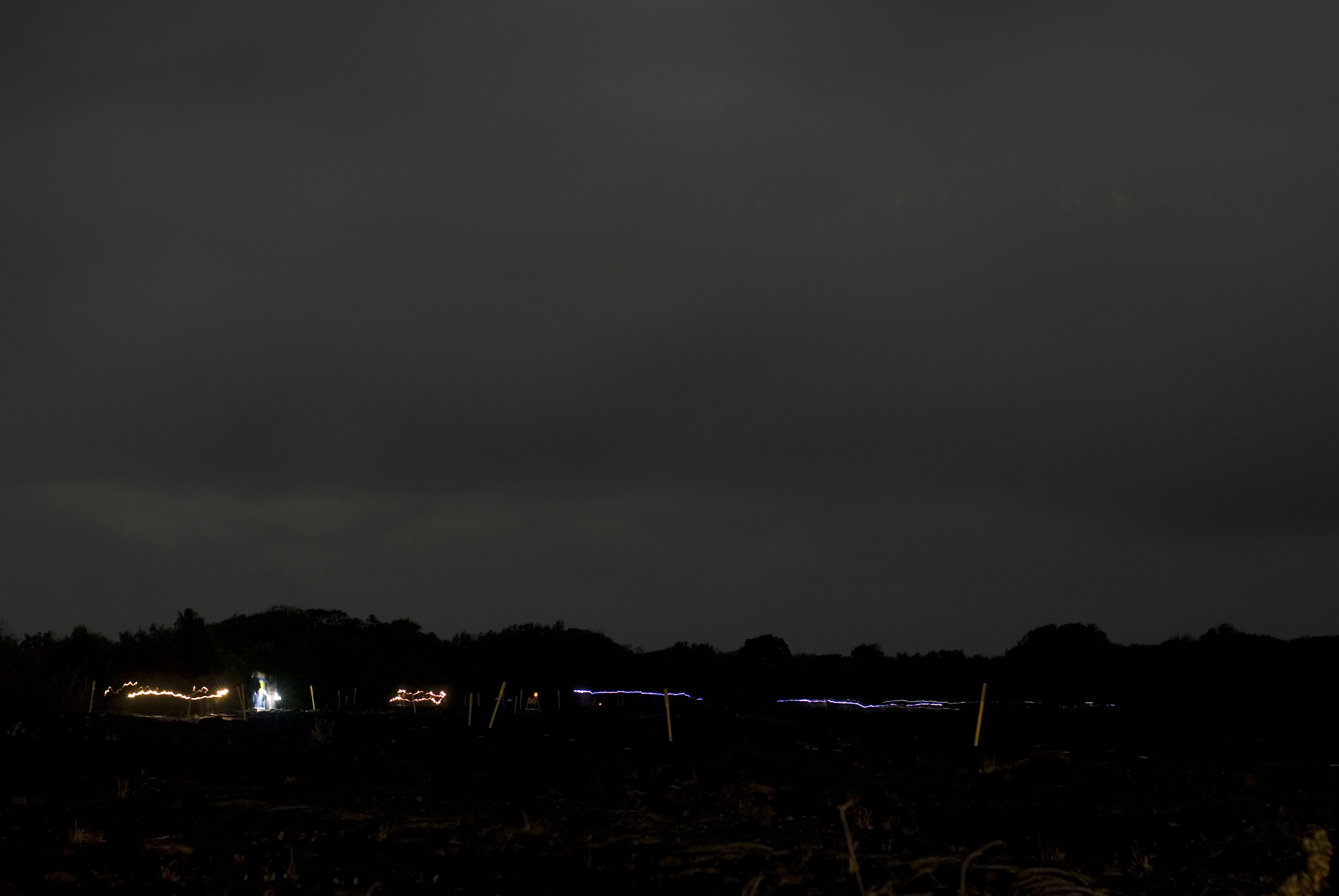 Keywords: tourists, torch trails, night, return, lava viewing, spectacle, abstract, traccers, trail, people, black, night time
