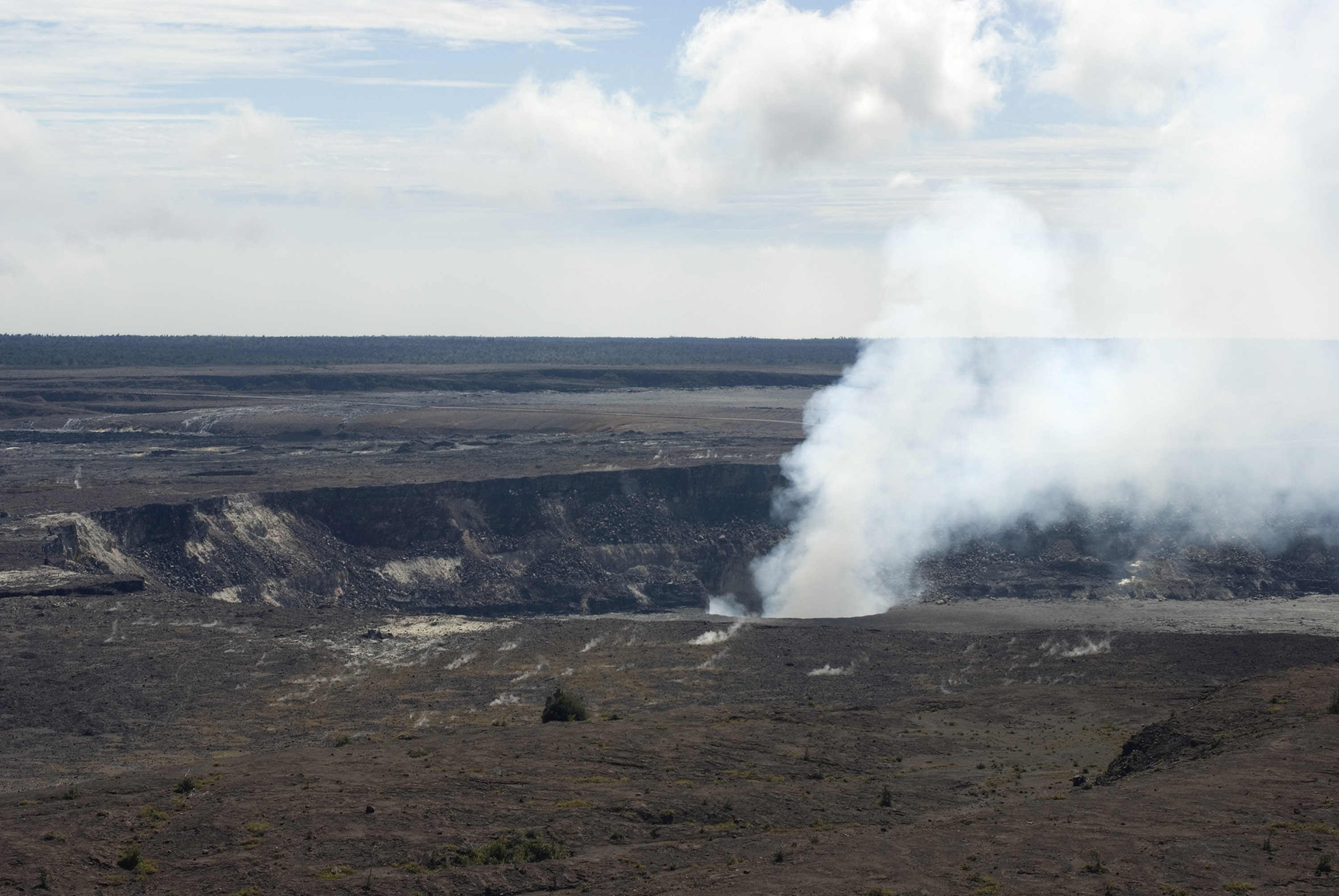 Keywords: caldera, kilauea, volcano, smoke, steam, vent, gas, halemaumau crater, black, volcanic rock, rocks