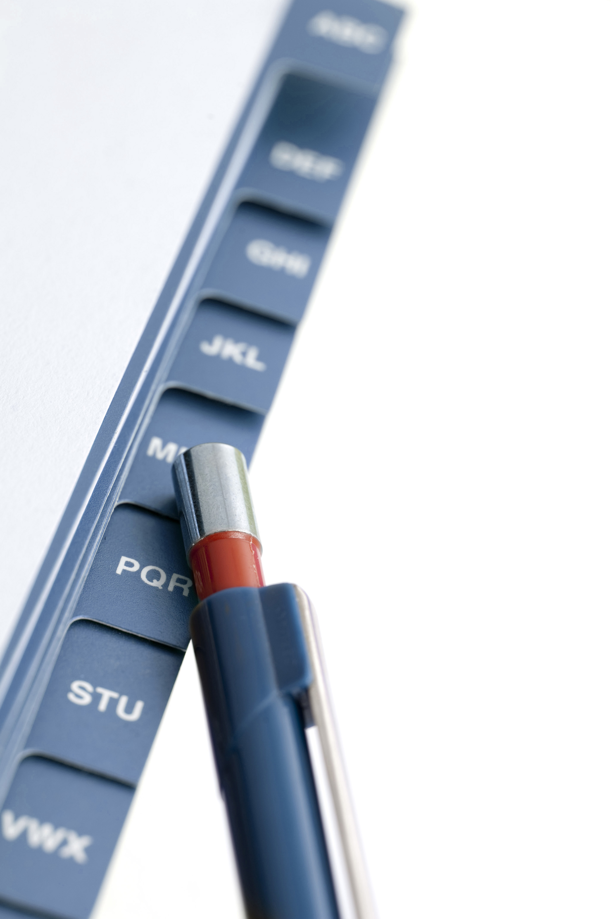 Keywords: information, letters, looking, book, index, search, pencil, address, file, directory, locate, organise, divisions, tabs, alphabetic