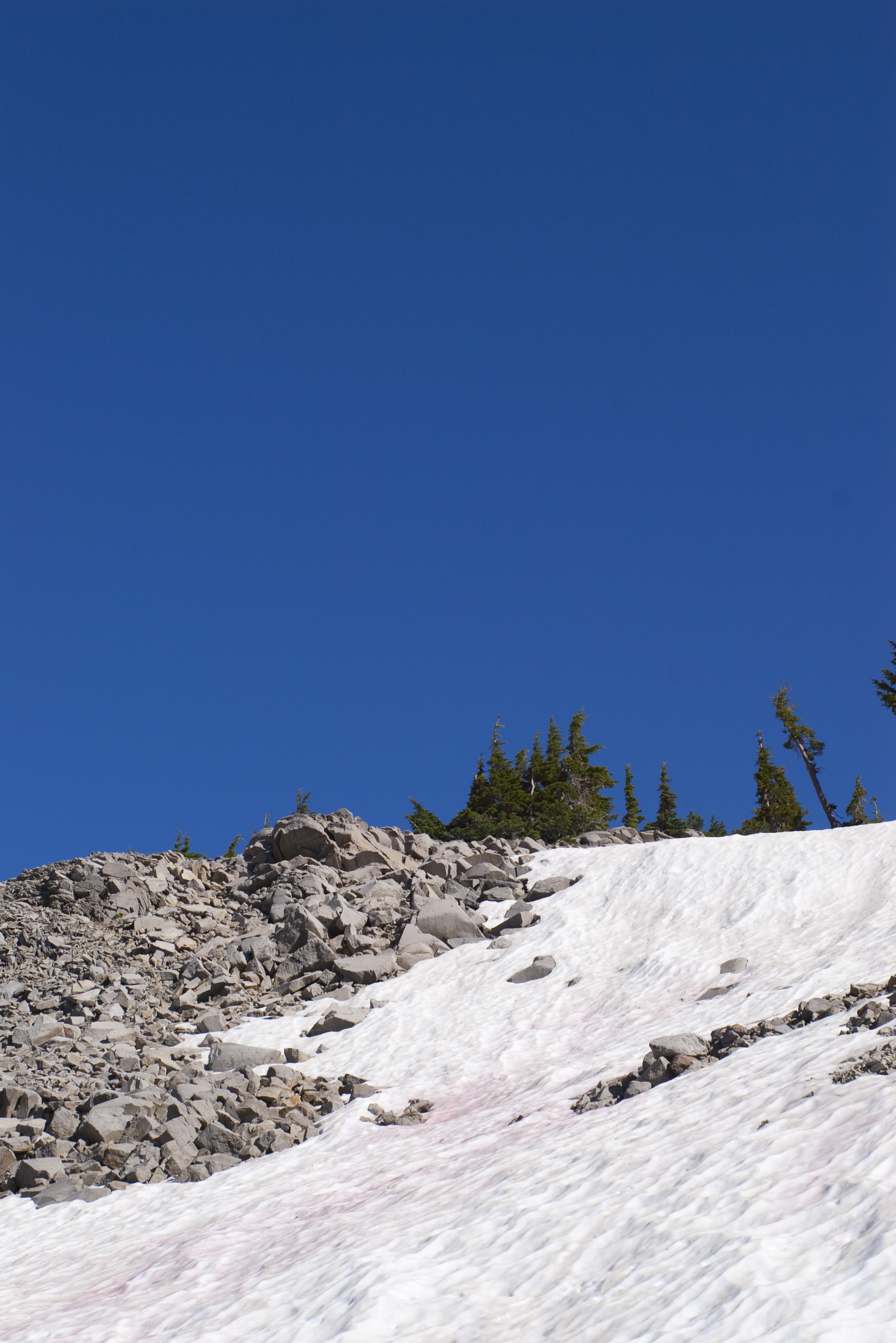 Keywords: rocks, snow, trees, sky, blue, trees, pine tree, spring, melting