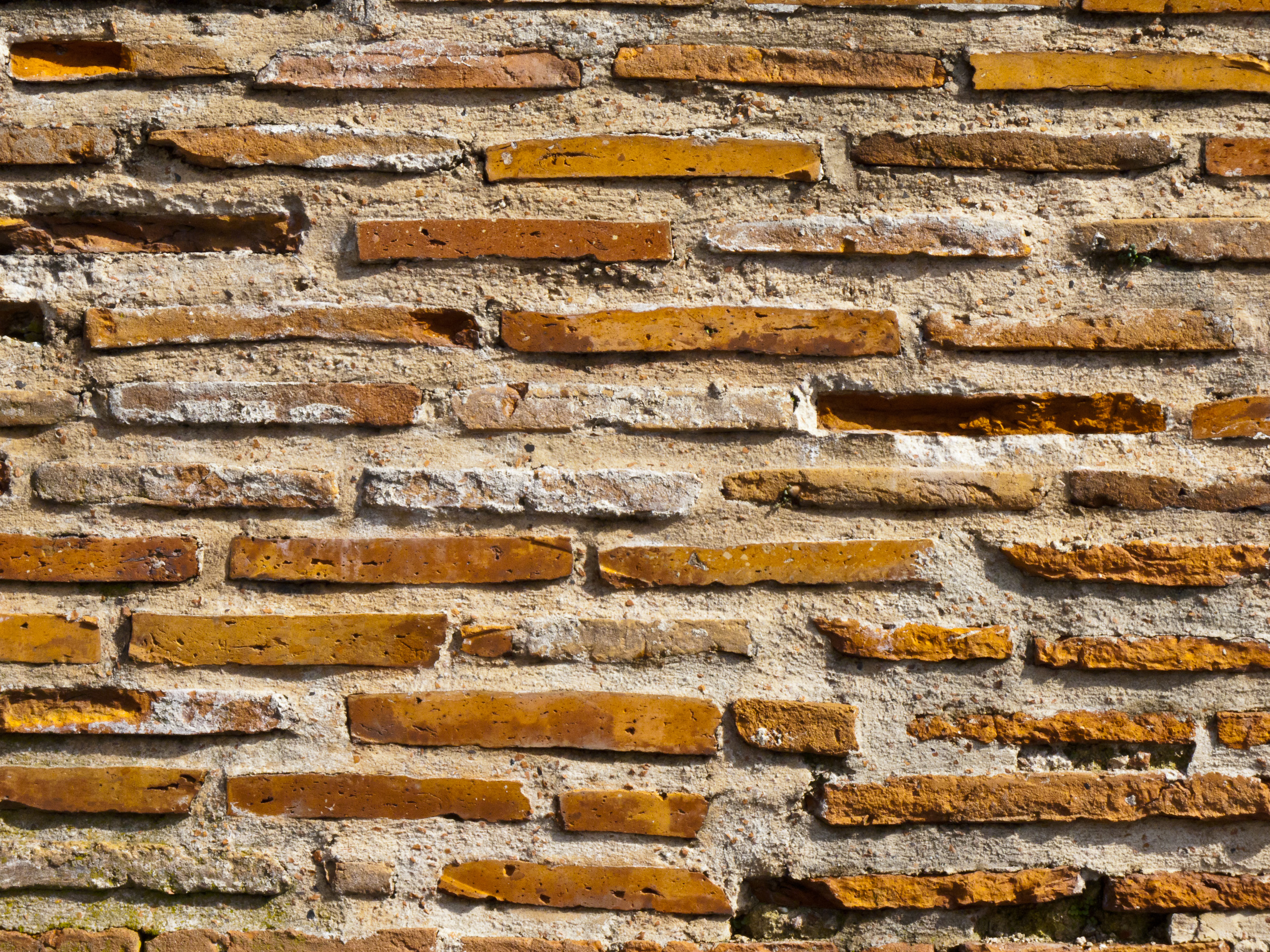 Keywords: Ancient, brick, linear, line, narrow, thin, wall, orange, tan, brown.