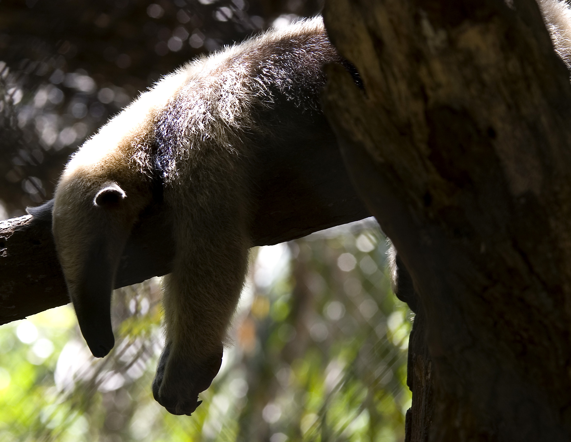 an anteater sleeping in a tree during the midday sun