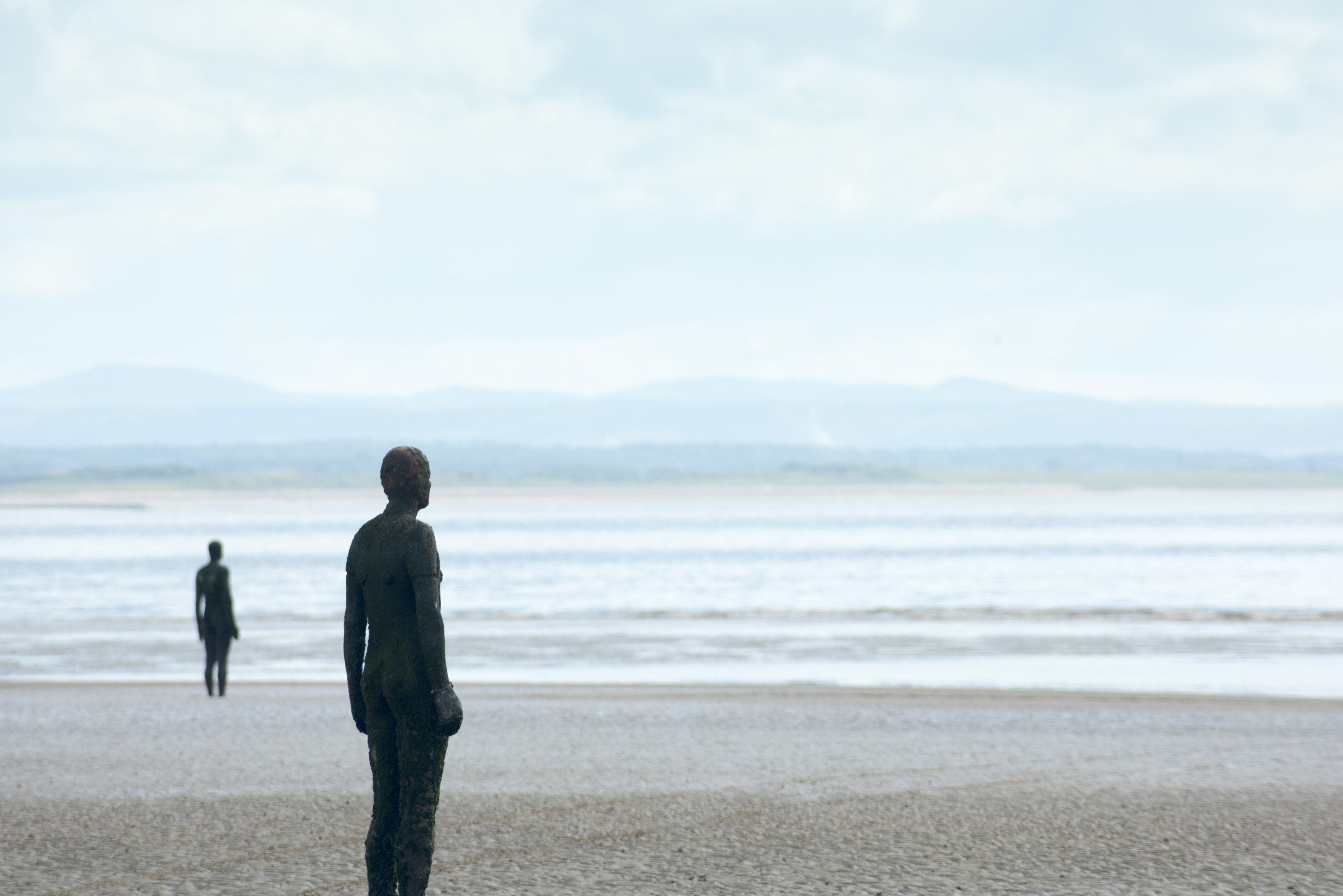 Keywords: art, copy space, crosby beach, human, moody, outdoors, sculptures, sky, statues, uk, united kingdom, famous, objects, another place, standing
