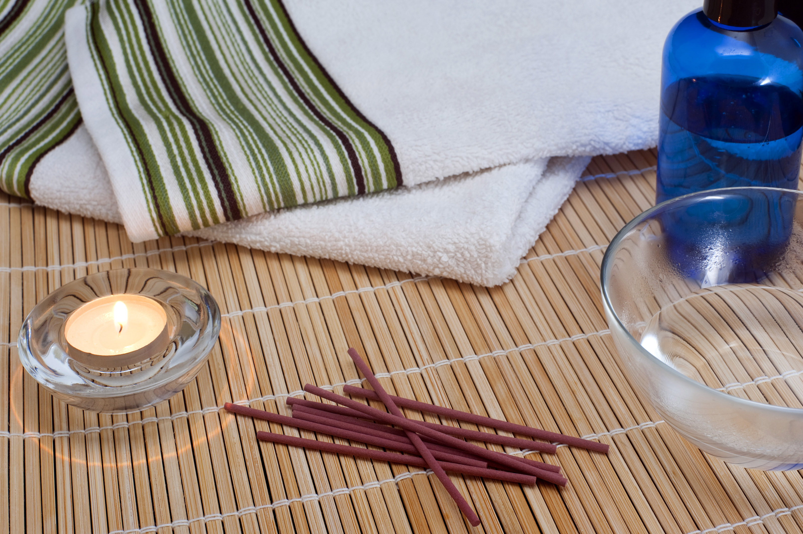 scented massage oil and incense sticks for an indulgent aromatherapy massage