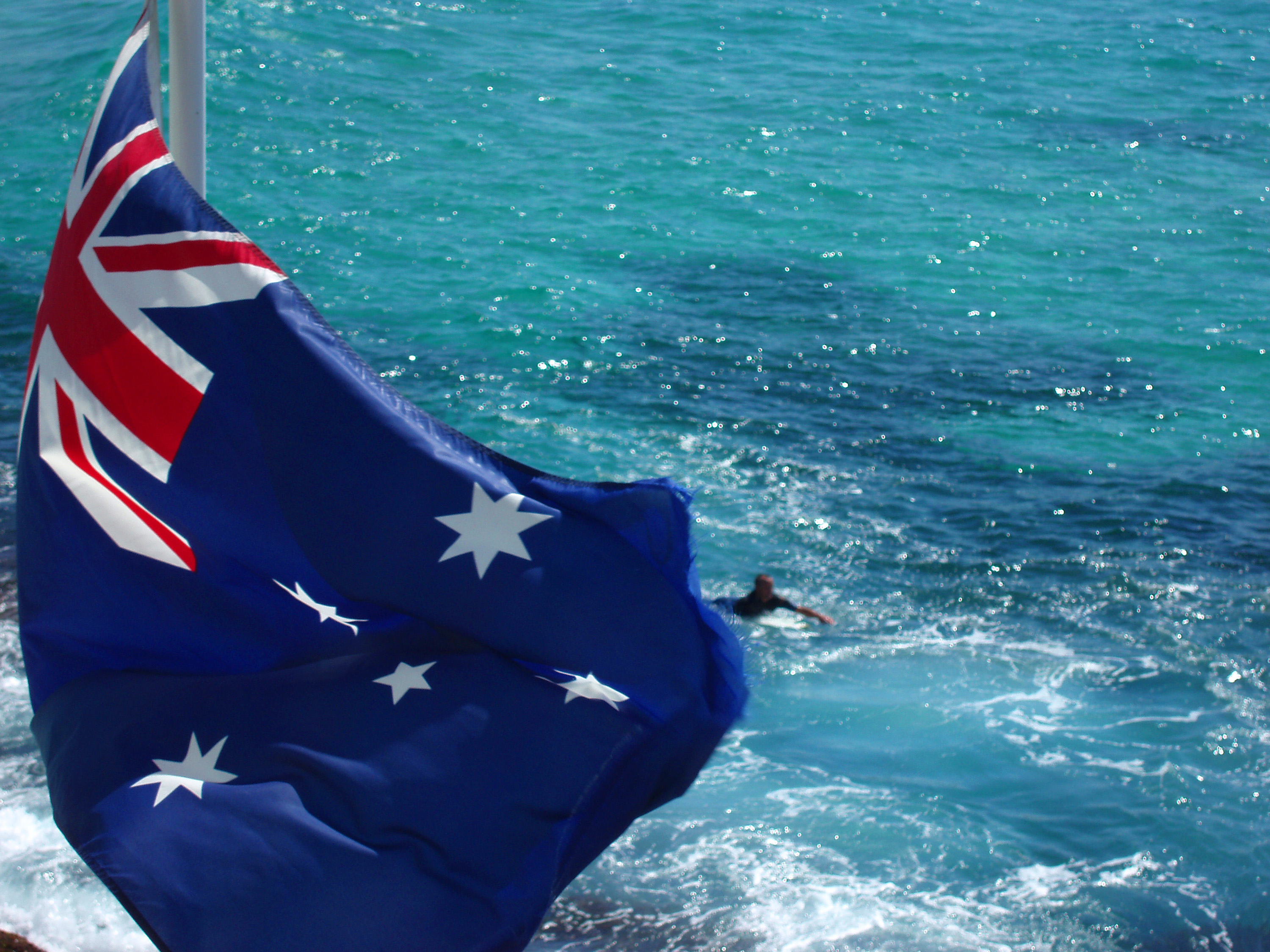 Keywords: australia, australian, flag, swim, water, bondi, ocean, blue, green