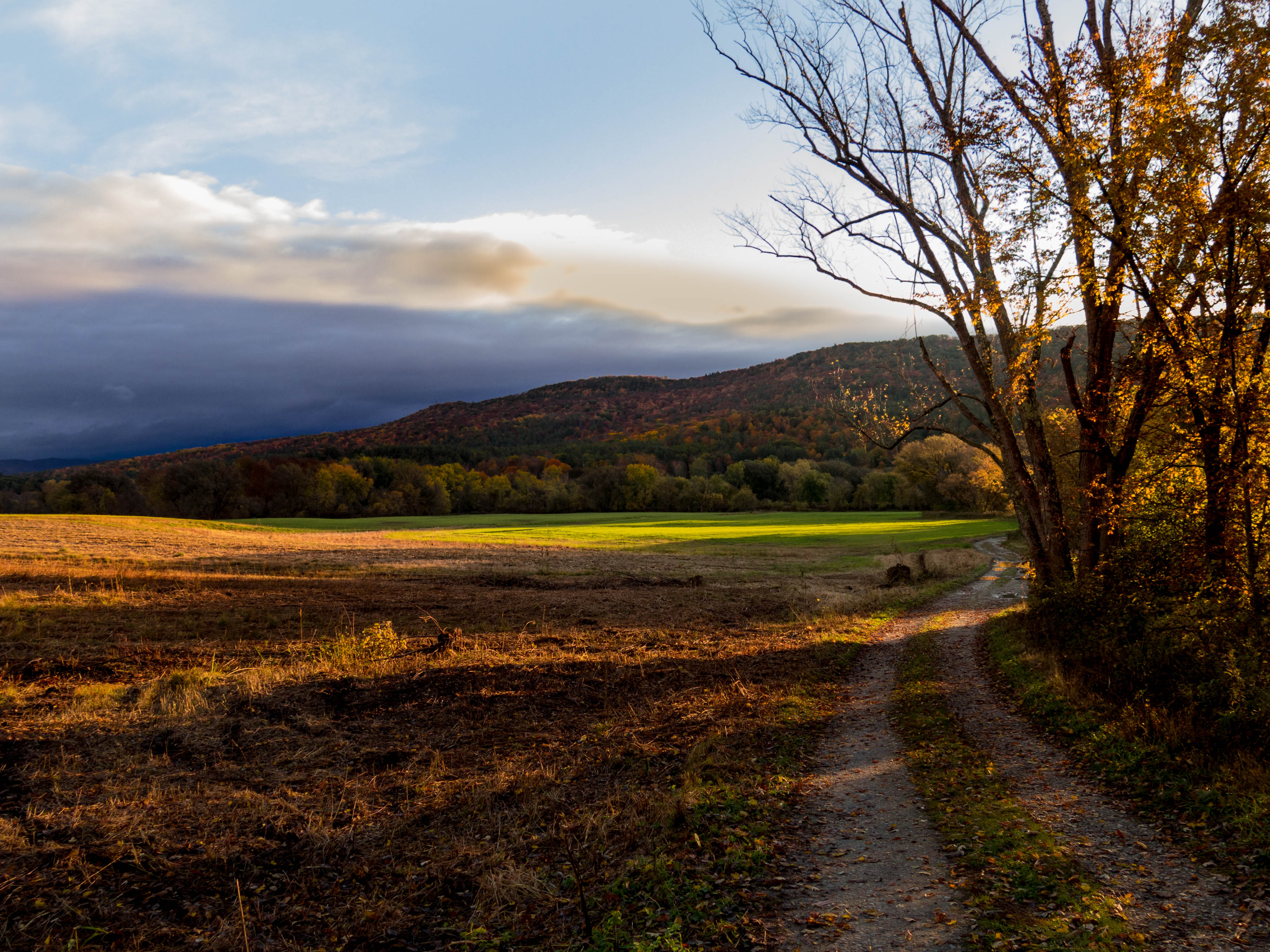 Rural, Vermont Autumn road late afternoon after the rains.