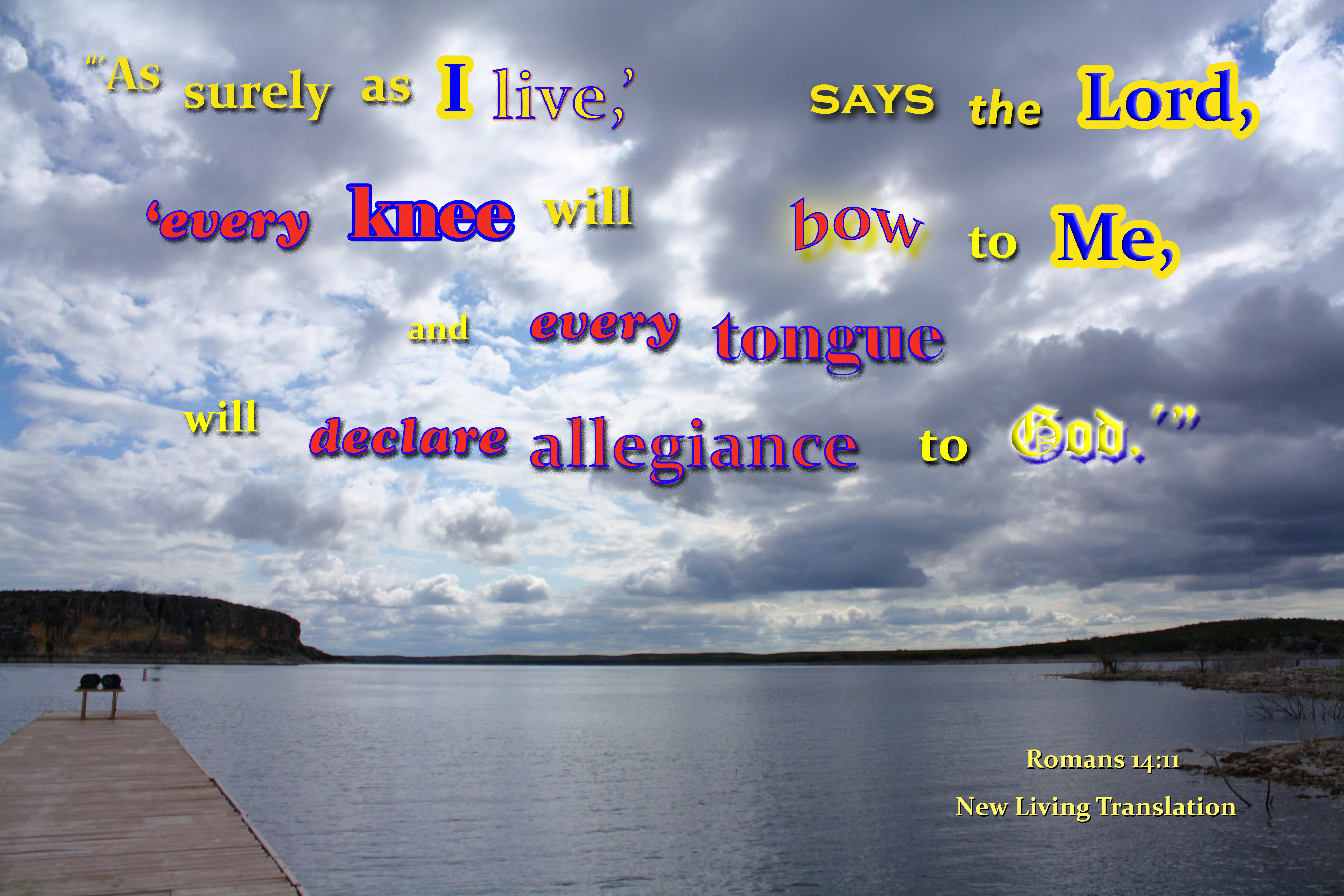 Cloudy day at the lake with a dockPhoto Title: Every Knee Will Bow to God