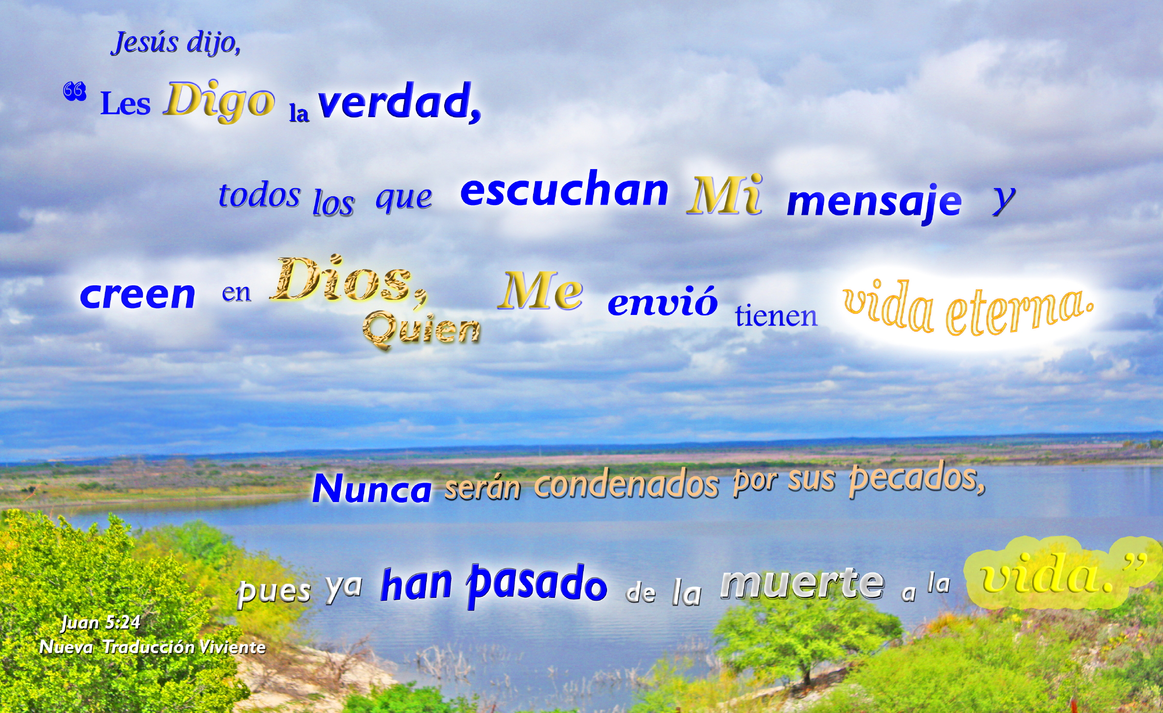 Keywords: Bible, lake, shoreline, rocks, bushes