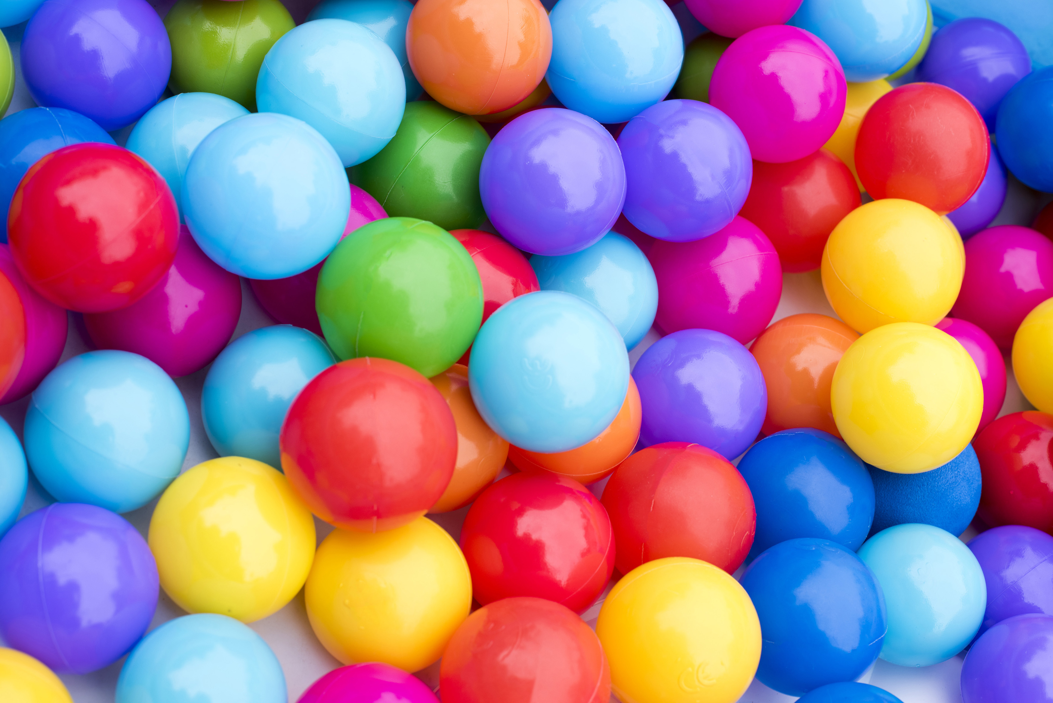 A close up of multicoloured plastic balls in a ball pit.