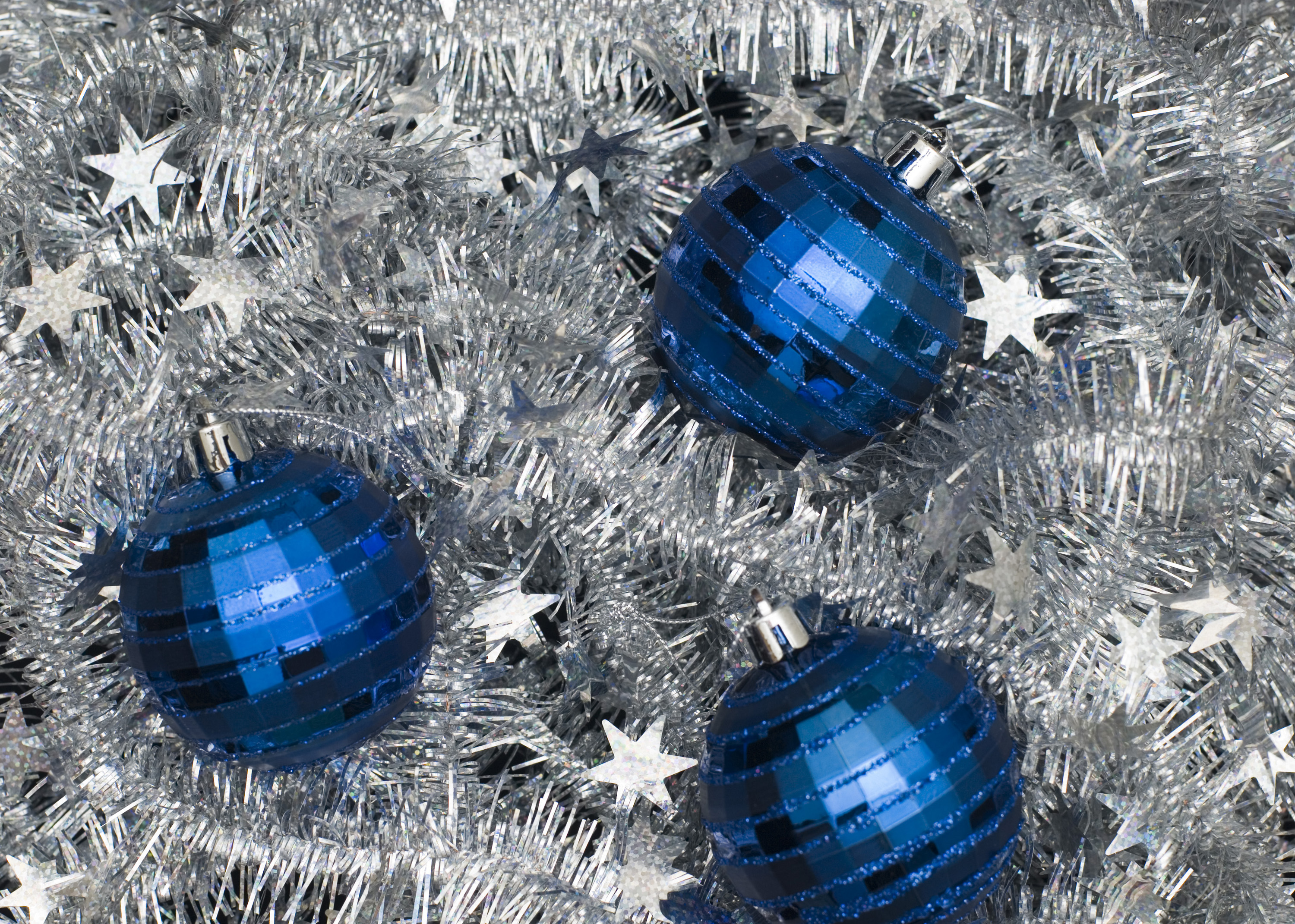 Keywords: christmas, festive, holidays, seasonal, xmas, holiday, blue, reflective, sparkle, glitter, ball, bauble, mirrored, slver, tinsel