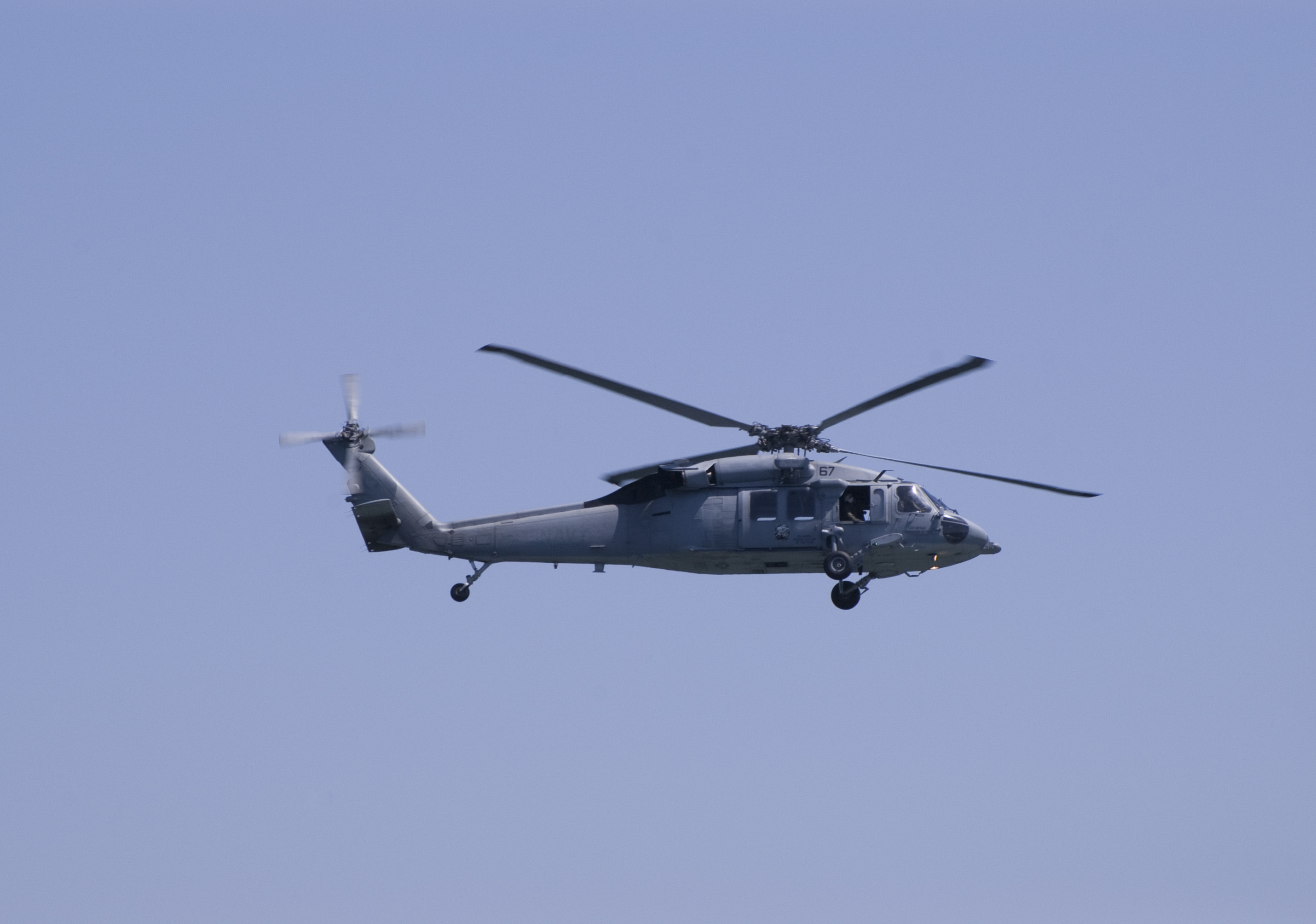 A Sikorsky SH-60 Seahawk (similar to a UH-60 Black Hawk) in the sky