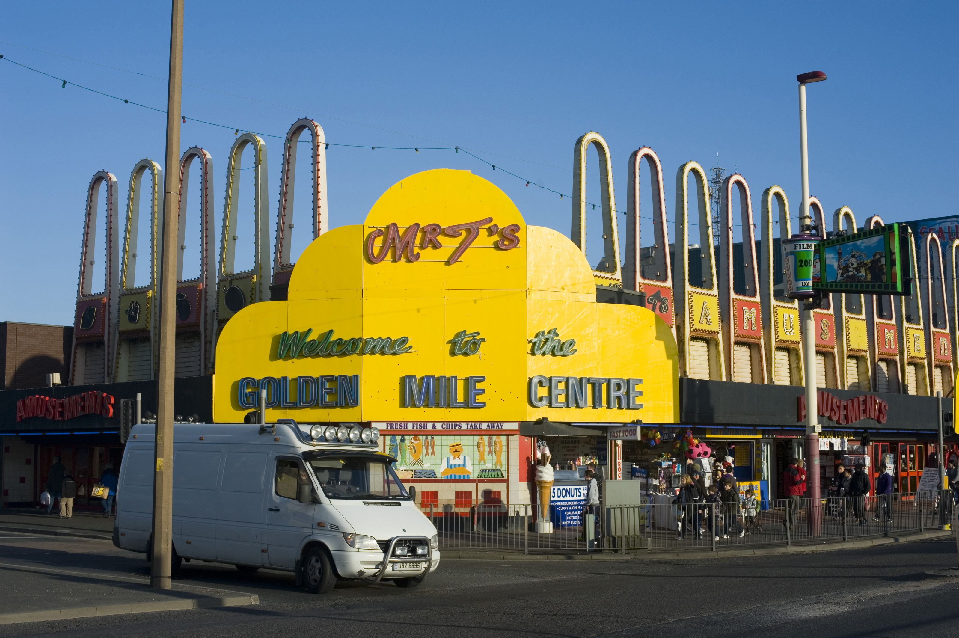 Keywords: street, signage, travel, building, yellow, fun, city, exterior, games, recreation, england, commercial, entertainment, mall, amusement, van, arcade, lancashire, blackpool, gaming machines