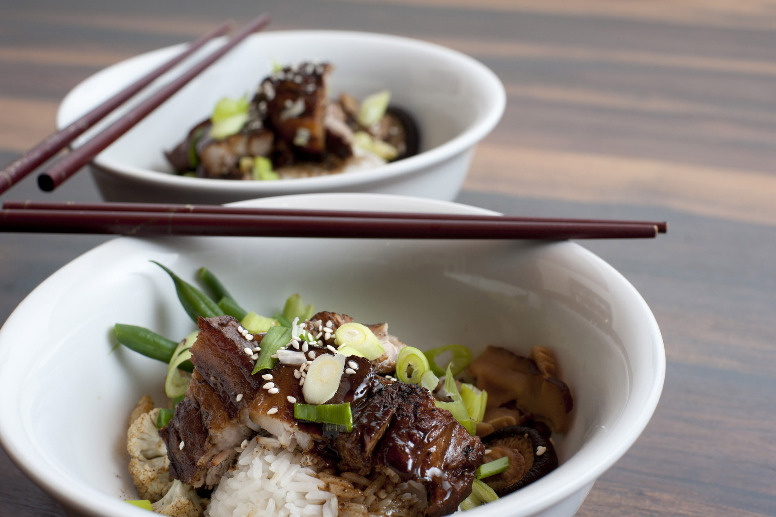 Keywords: asian, beans, bowl, chinese, closeup, fatty, food, green, meal, meat, pork, rice, sauce, serving, vegetables