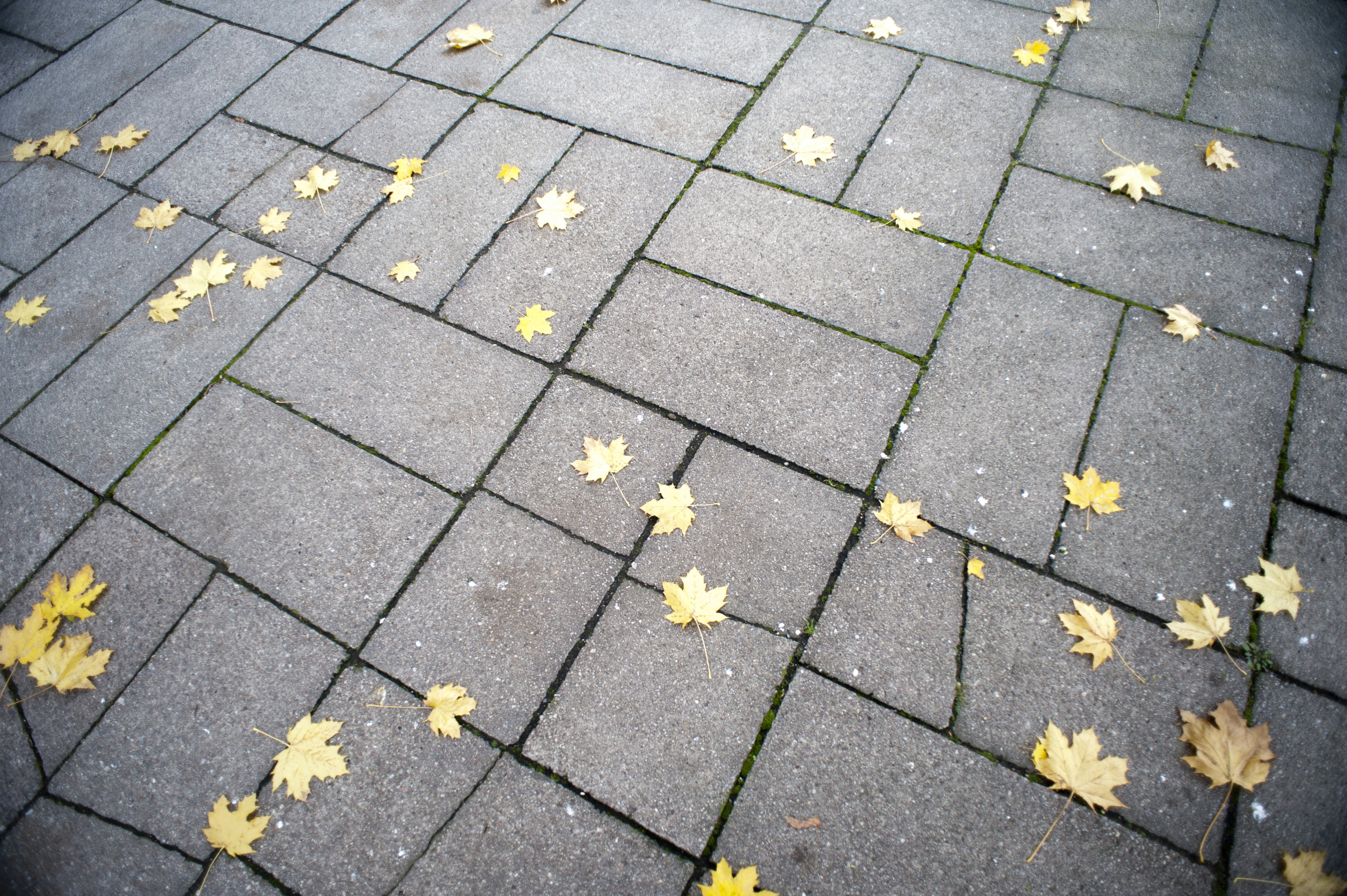 10906 Brick pavement with yellow autumn leaves - this image by freebie.photography is licensed under a Creative Commons Attribution 3.0 Unported License.